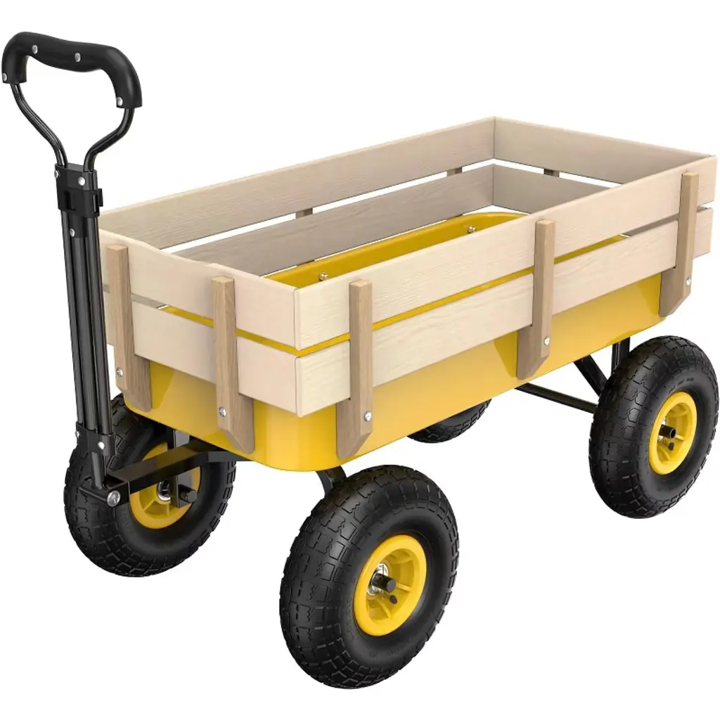 Outdoor Wagon All Terrain Pulling W/wood Railing Air Tires Garden Cart