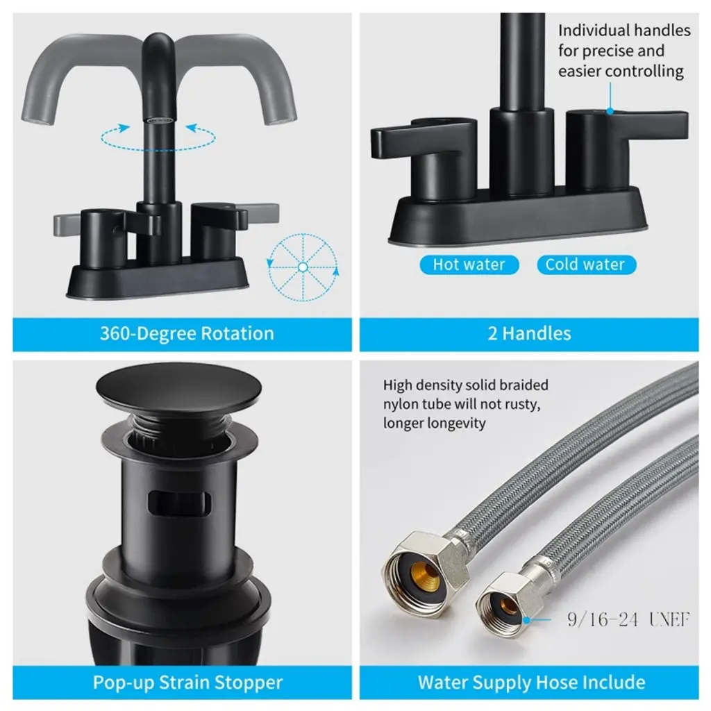 Paged Bathroom Faucet 2-handle Bathroom Sink Faucet With Pop Up Drain And Water Supply Lines, 3 Holes Faucet For Bathroom, Matt Black