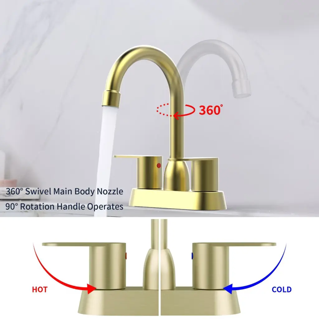 Paged Bathroom Faucet 2 Handles Bathroom Sink Faucet With Deck Mounted, 3 Hole Faucet For Bathroom, Brushed Gold