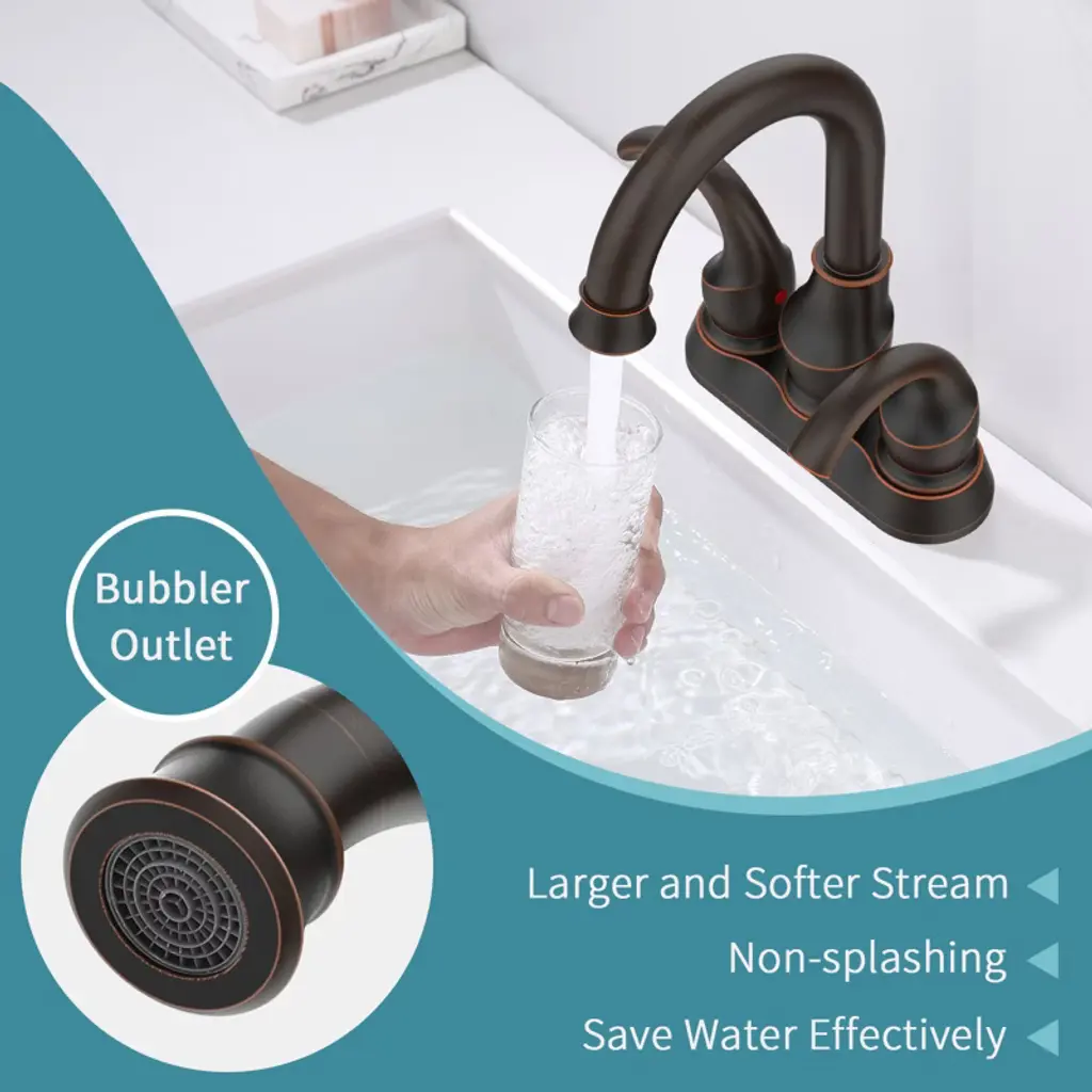 Paged Bathroom Faucet With 2-handle And 360 Degree Rotating Spout, 4-inch Centerset Sink Faucet With Pop-up Drain And Supply Hoses, Oil-rubbed Bronze