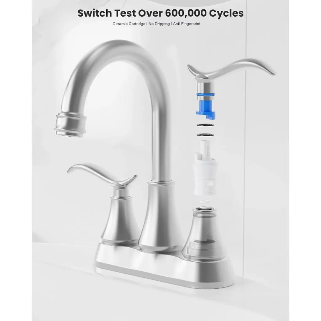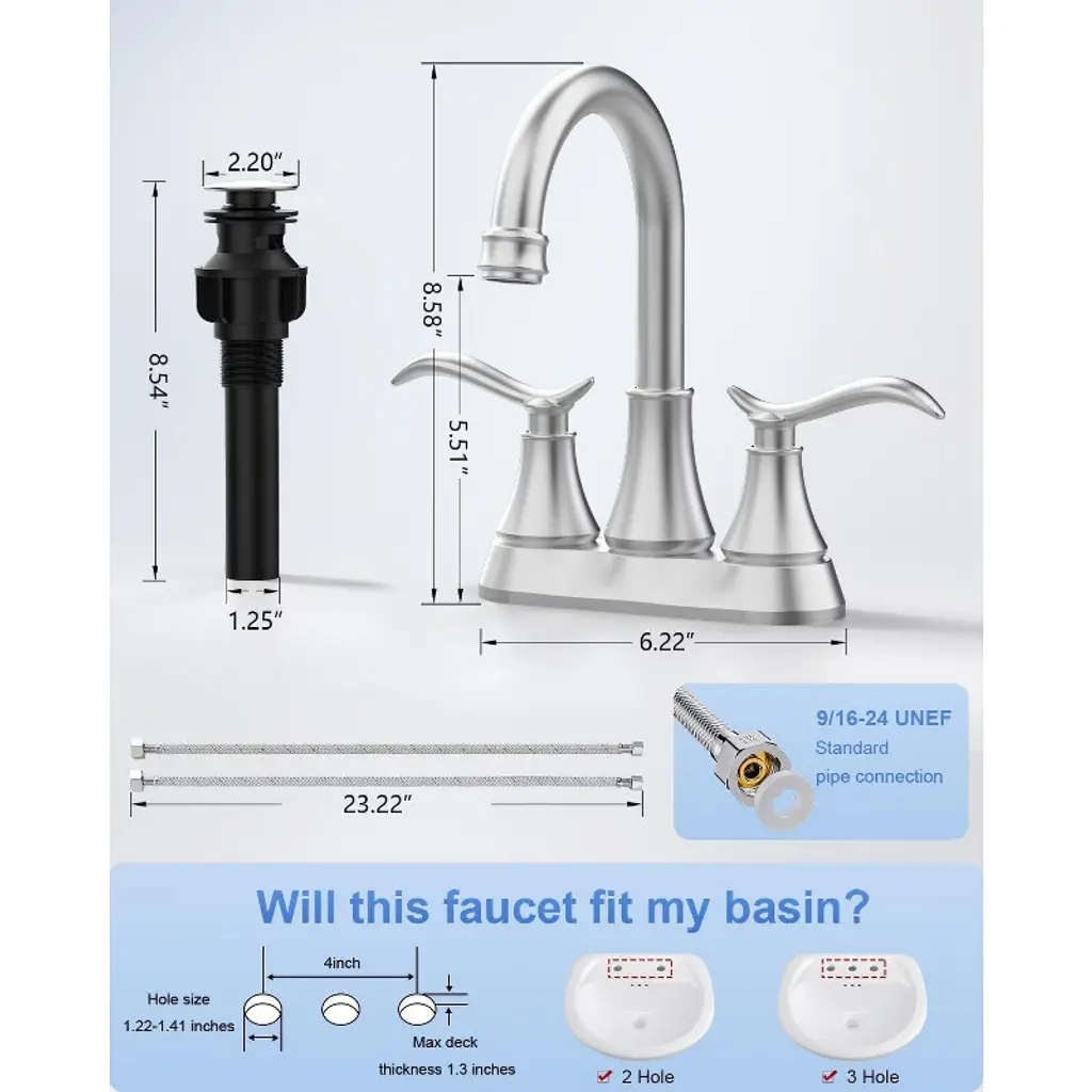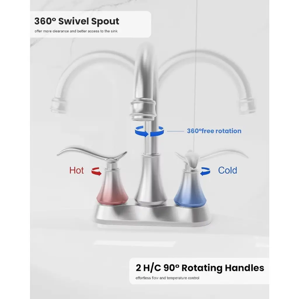 Paged Bathroom Faucet With 360 Degree High Arc Swivel Spout, 2-handle Bathroom Sink Faucet With Pop Up Drain & Supply Hoses, Brushed Nickel