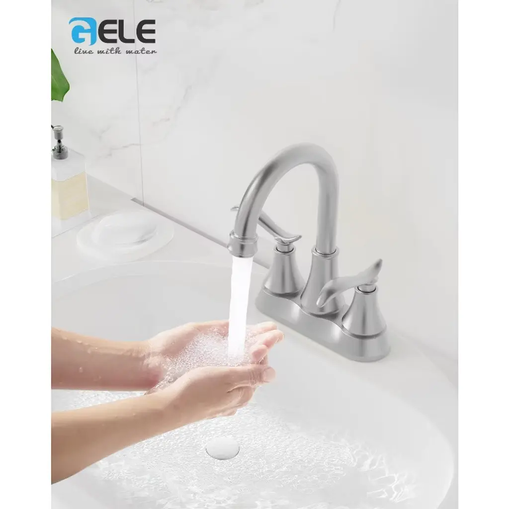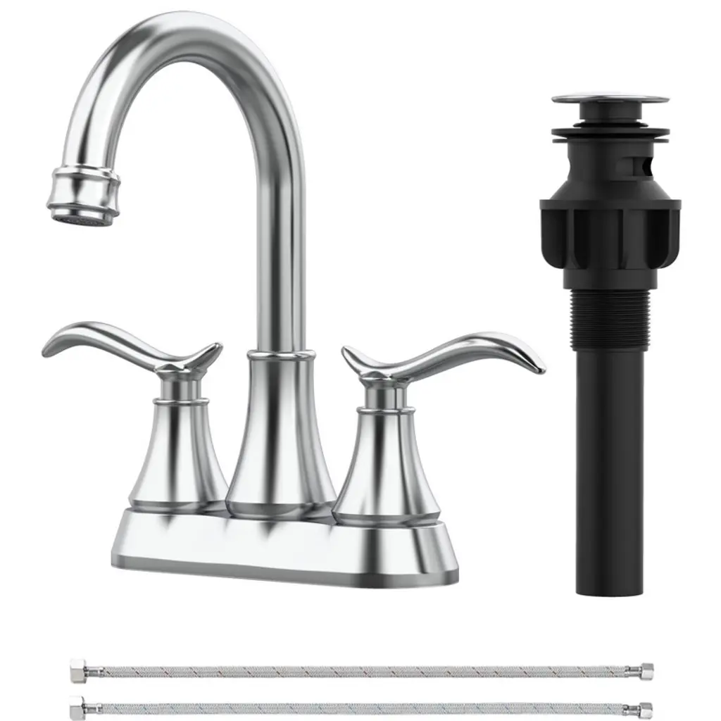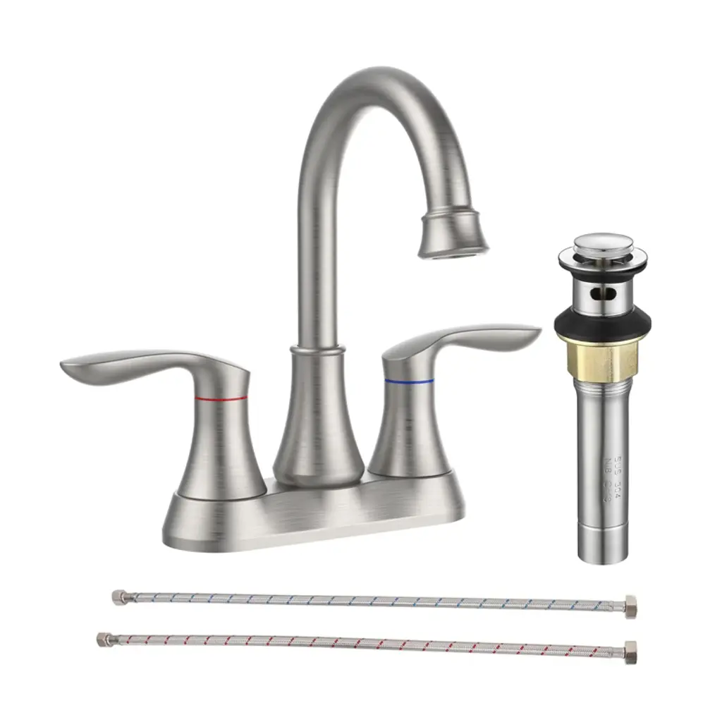 Paged Bathroom Faucet With 360 Degree High Arc Swivel Spout, 2-handle Bathroom Sink Faucet With Pop Up Drain & Supply Hoses, Brushed Nickel