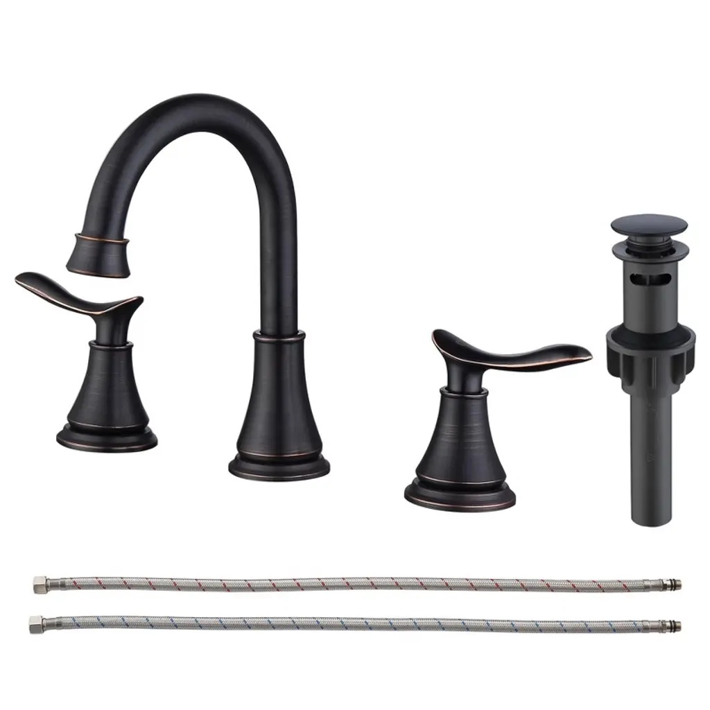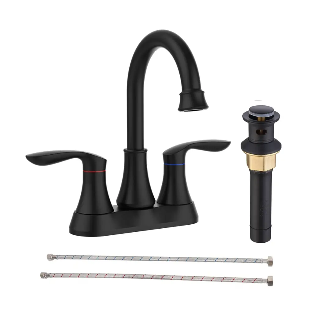 Paged Bathroom Faucet With 360 Degree High Arc Swivel Spout, 2-handle Bathroom Sink Faucet With Pop Up Drain & Supply Hoses, Matt Black