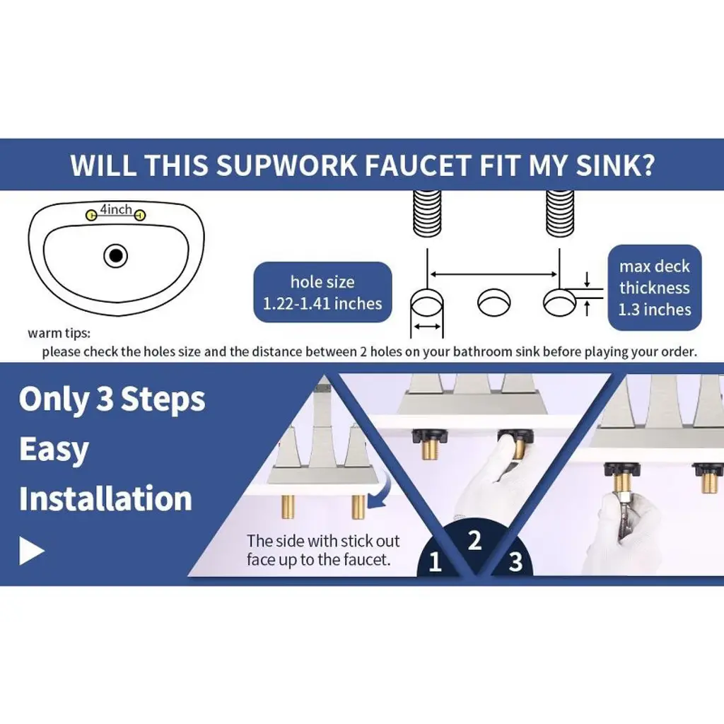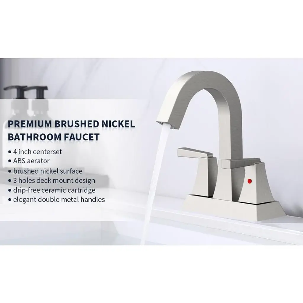 Paged Bathroom Faucet With 4 Inch Center-set, 2-handle Sink Faucet With Overflow Hole And 2 Supply Lines Included For Bathroom, Brushed Nickel