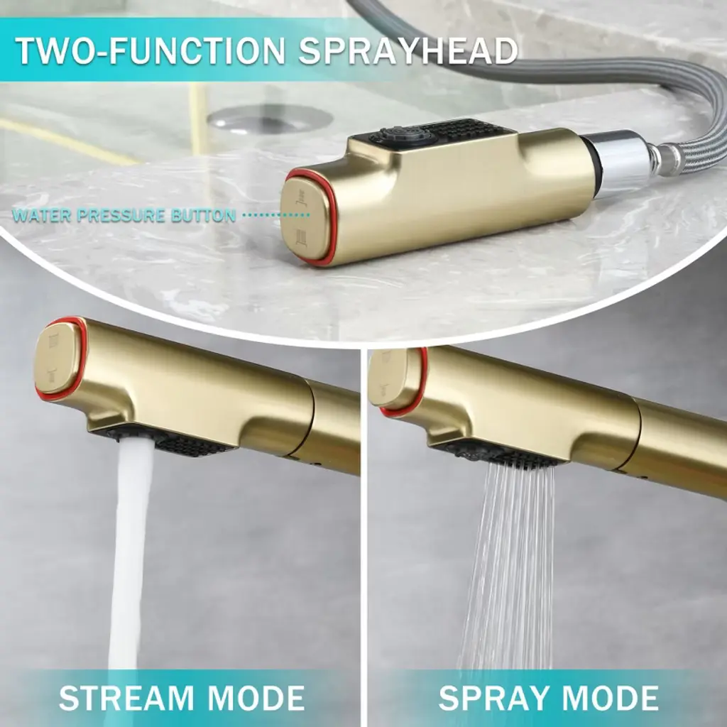 Paged Pull-down Vessel Faucet Single Hole Bathroom Sink Faucet With Lift Spout & Dual Spray Mode, Faucet For Bathroom Sink, Brushed Gold