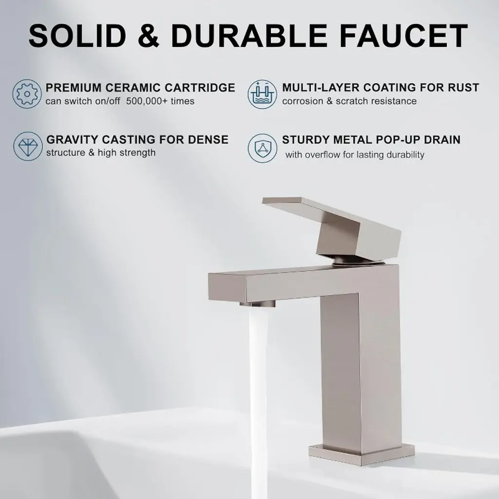 Paged Single Handle Bathroom Faucets Single Hole Sink Faucet Modern Vanity Basin Faucet With Pop-up Drain & Water Supply Hoses, Brushed Nickel