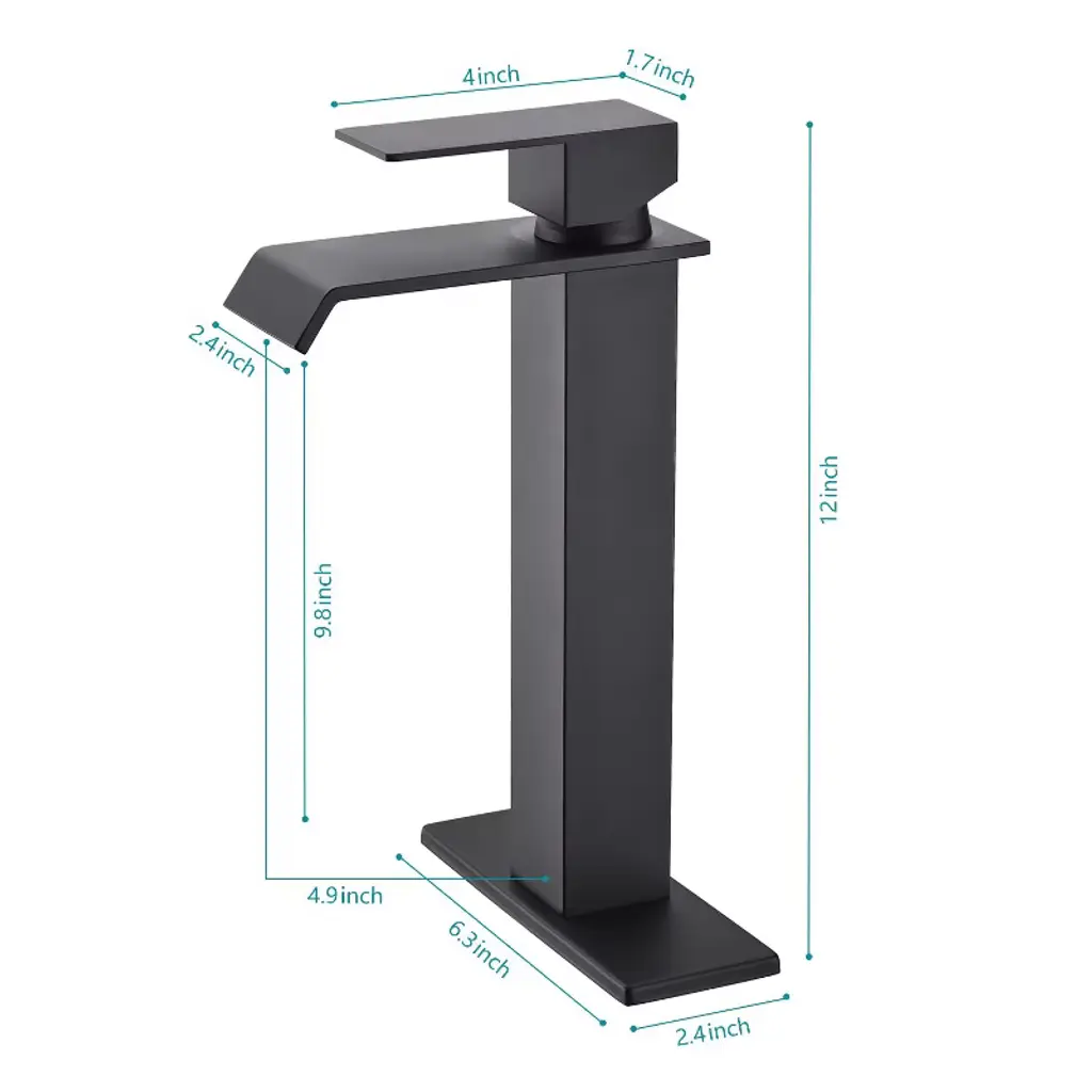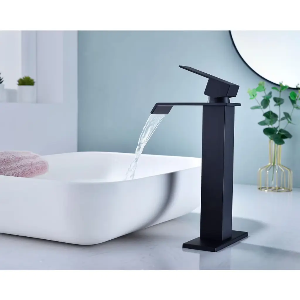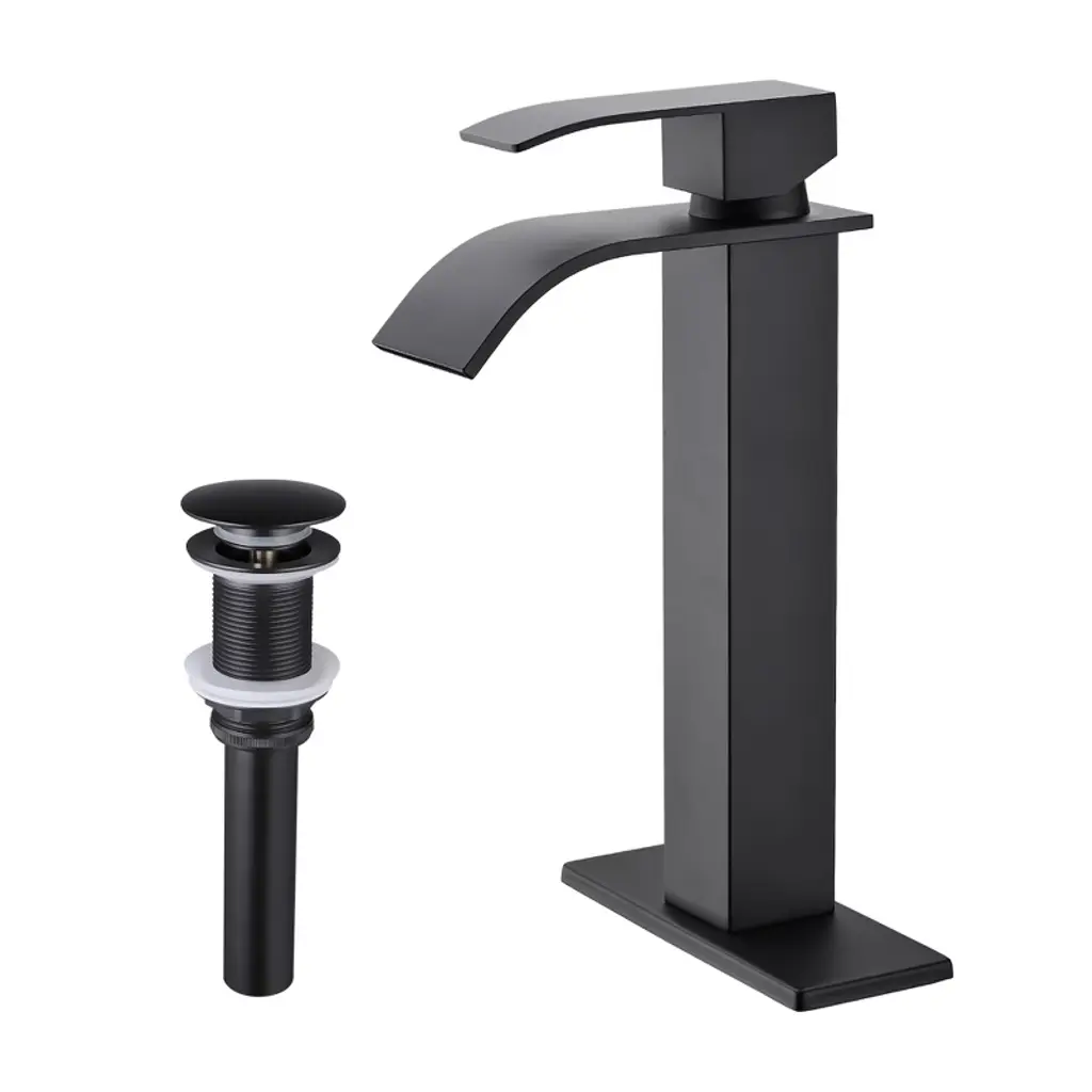 Paged Single Handle Faucet Waterfall Spout Bathroom Faucets With Pop-up Drain (No Overflow), Faucet For Bathroom Sink, Matte Black