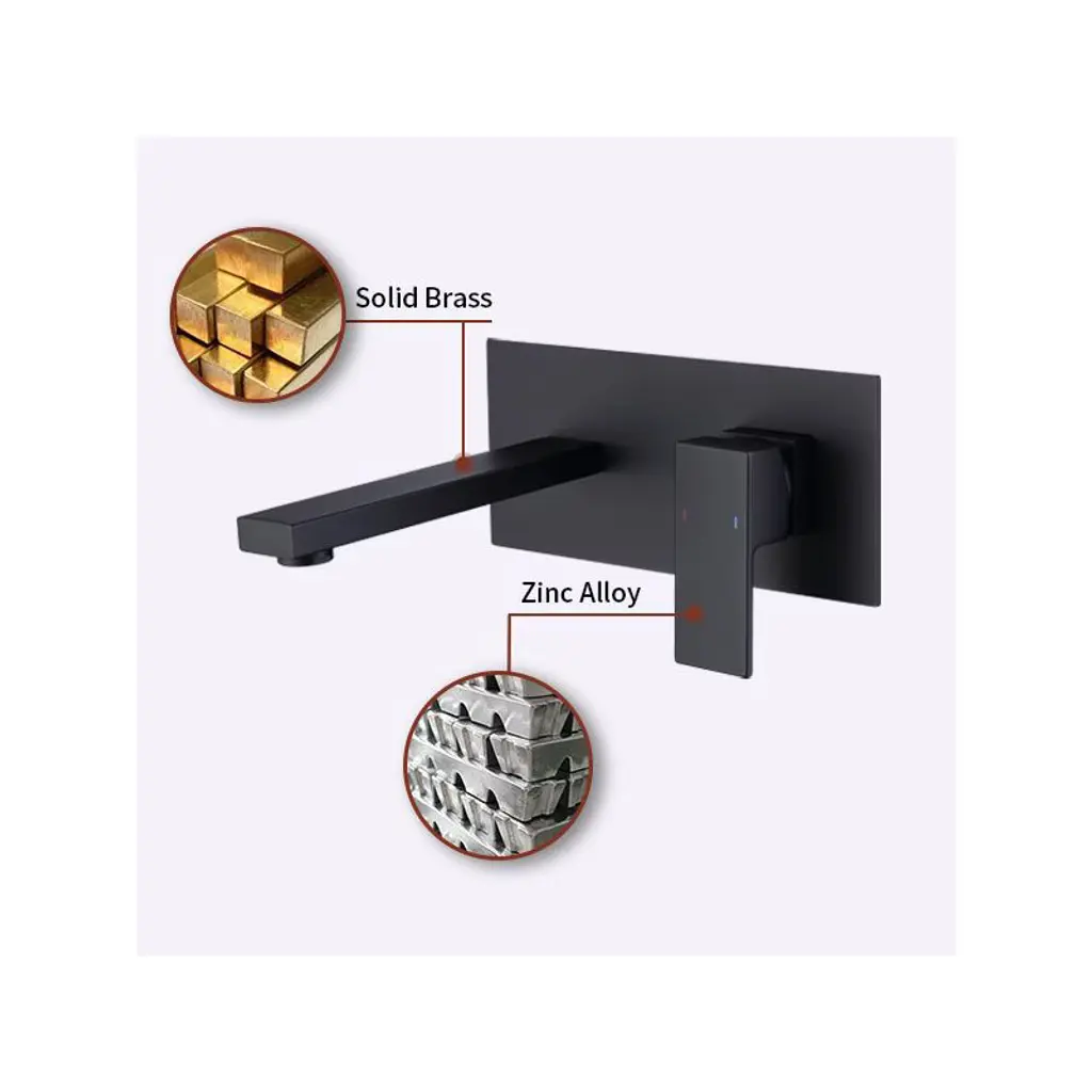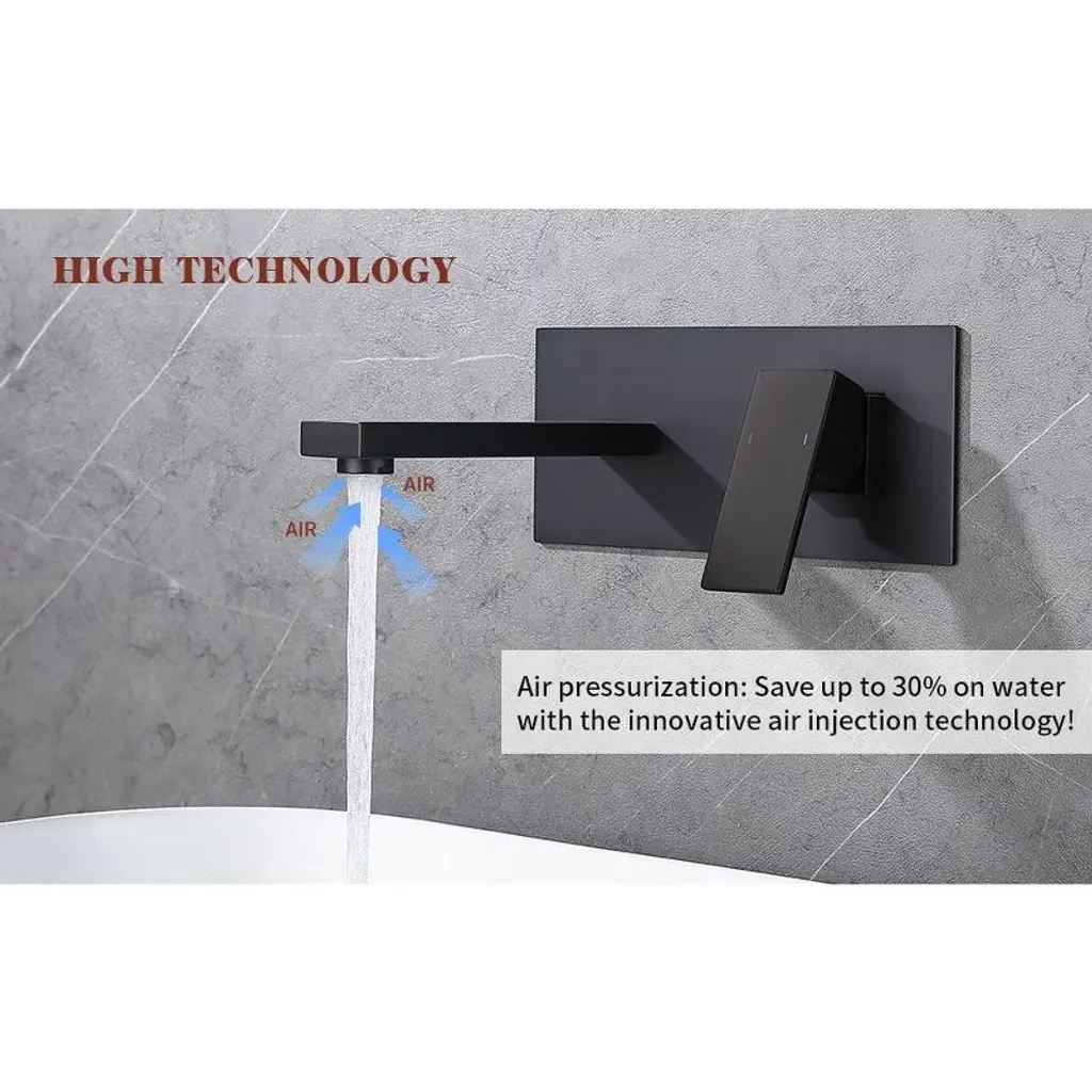 Paged Wall Mount Faucet, Single Handle Bathroom Vanity Sink Faucets, Faucet For Bathroom Sink, 2 Holes Brass Rough-in Valve Included, Matt Black