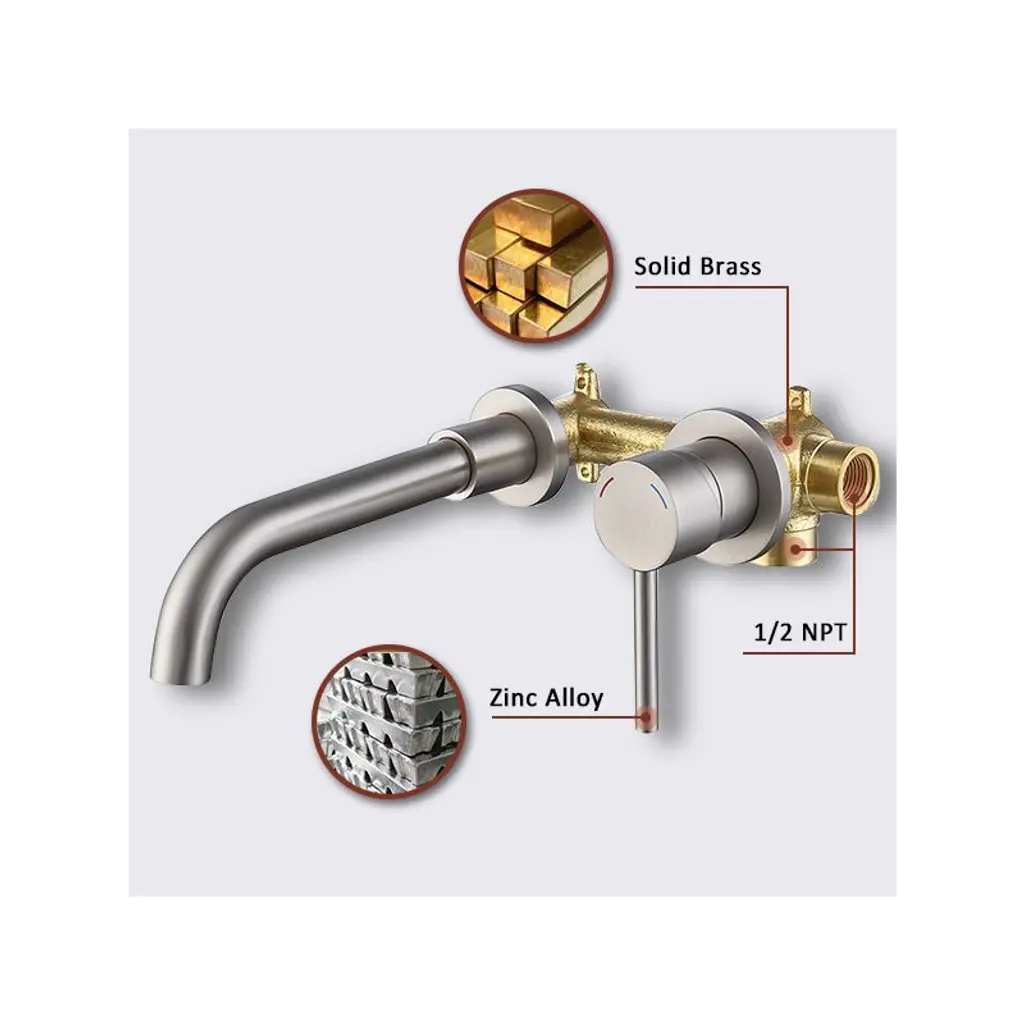 Paged Wall Mount Faucet Single Handle Bathroom Vanity Sink Faucets With 360-degree Swivel Spout Design, Faucet For Bathroom Sink, Brushed Nickel