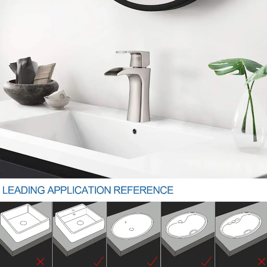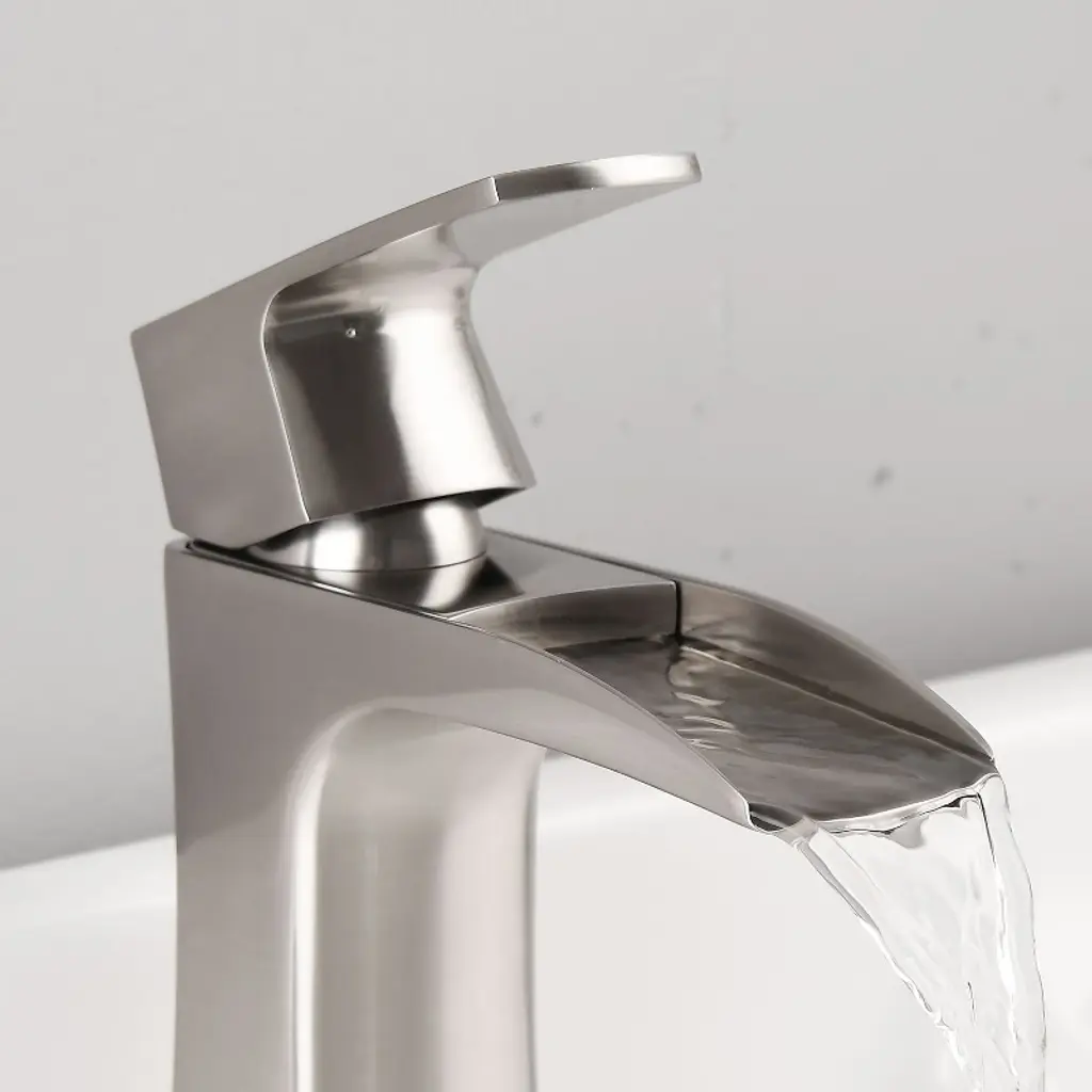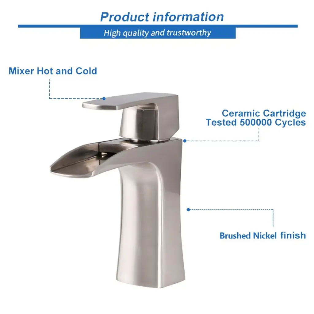 Paged Waterfall Bathroom Faucet Single Handle Brass Faucet With Drain, 1-hole Faucet For Bathroom Sink, Nickel