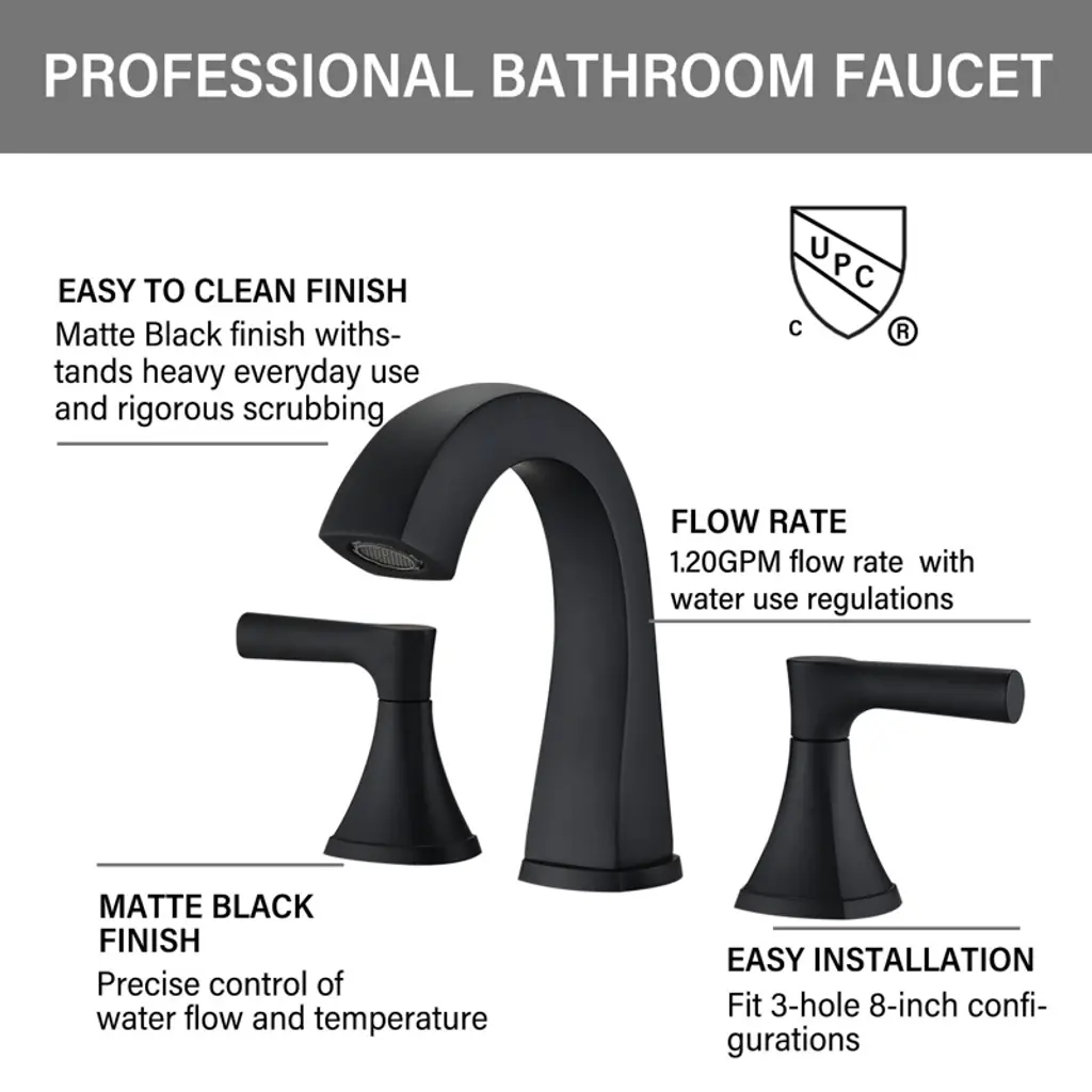 Paged Widespread Bathroom Faucets 2 Handle Bathroom Sink Faucet Vanity Basin Faucet With Drain Assembly, Matte Black