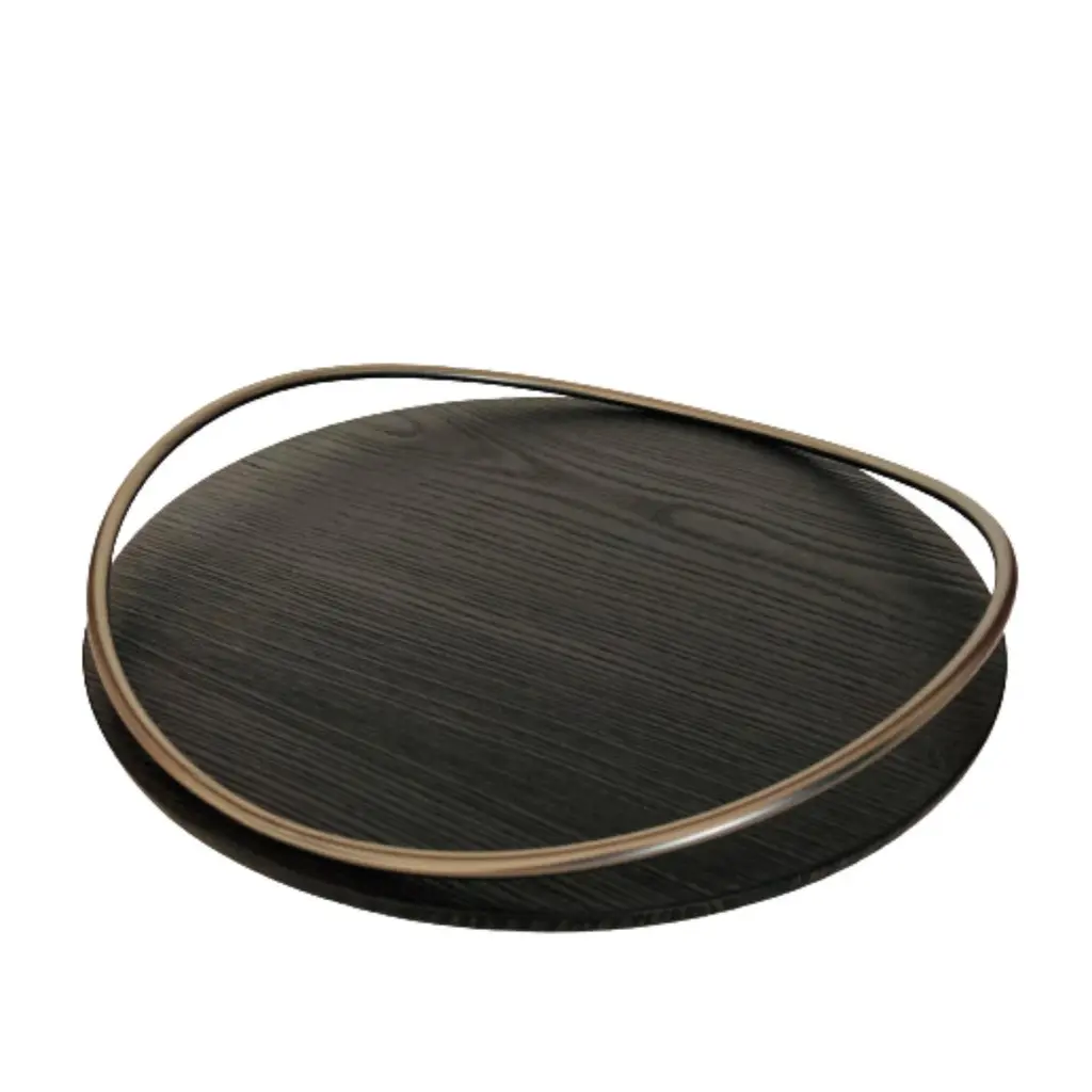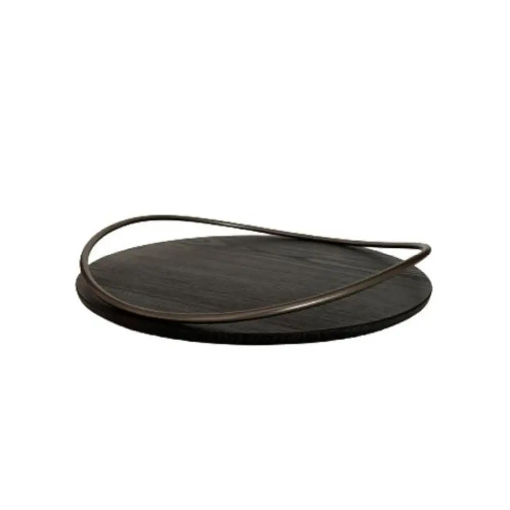 Pair of Touché Bois black ash wood small handle by Mason EditionsDimensions: 36 × H 4.4 cmMaterials: walnut Canaletto wood A light metal rod that rests on the surface and then lifts up, almost touching the surface with a quick tap, a movement that defines the handles of Touché trays.The organic shape of the oval base communicates with the thin tubular, giving the impression of a perpetual undulatory motion, which seems to vanish when the trays are looked at from above.This oval tray with a round handle won’t go unnoticed in the eyes of your party and dinner guests.The round MDF base is available in several colours, with a slim handle in galvanized 24k gold. A sleek design that adds a touch of luxury to your dining experience.Mason Editions is an Italian company specialized in the production of design furniture, lighting solutions, and accent pieces. Born from the lifelong passion for lighting and entrepreneurial spirit of Fabio and his partner Silvia, Mason Editions places itself halfway between fine art and exquisite craftsmanship. A collection of lighting, design objects, and furnishing accessories, signed by artists Serena Confalonieri, Martina Bartoli, and Matteo Fiorini, head of the creative direction.Mason Editions comes from the experience of an Italian lighting company placed in the Veneto region.This new brand of furniture elements was born from the meeting between the entrepreneur Fabio Mason and three international designers who designed the first collection for a sophisticated public. Therefore the collection wants to be eclectic and timeless.The material contrast and fresh design, with essential shapes, mark the mason editions collection.In conclusion, the elegant Italian sign highlights proposals suitable for all environments.Mason editions is a set of experiences, artisans, and productive know-how that creates a capable system.