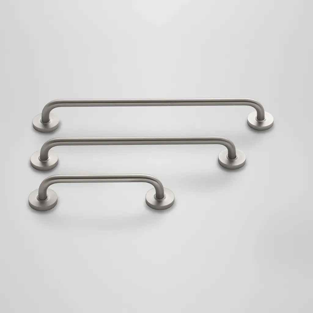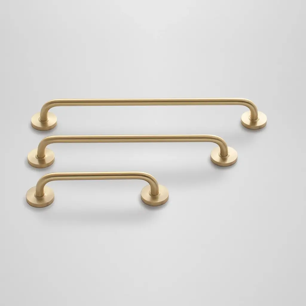 Named after famed musician and composer Charlie Parker, the Parker Pull's graceful profile and solid brass design are reminiscent of a saxophone's structure. Clean lines add a modern touch, while rounded wire handles make it comfortable to grasp. Features an optional backplate that may be used or removed based on desired aesthetic.