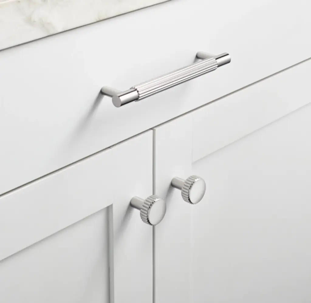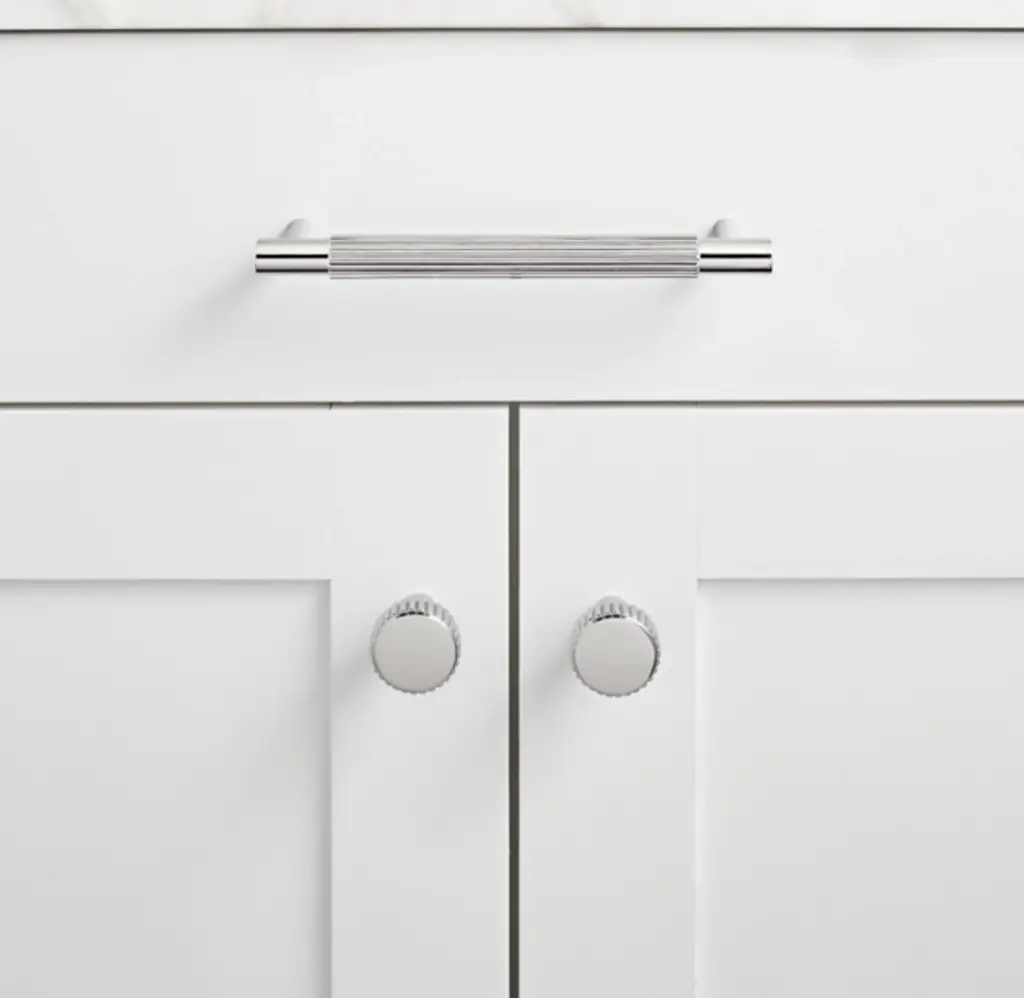 This collection from Jonathan Browning is expertly crafted from hand-polished, solid brass, the encircling pillars a nod to architectural design. Delicate channels between the tightly bound columns add a subtle rhythm and visual interest to the contoured forms.