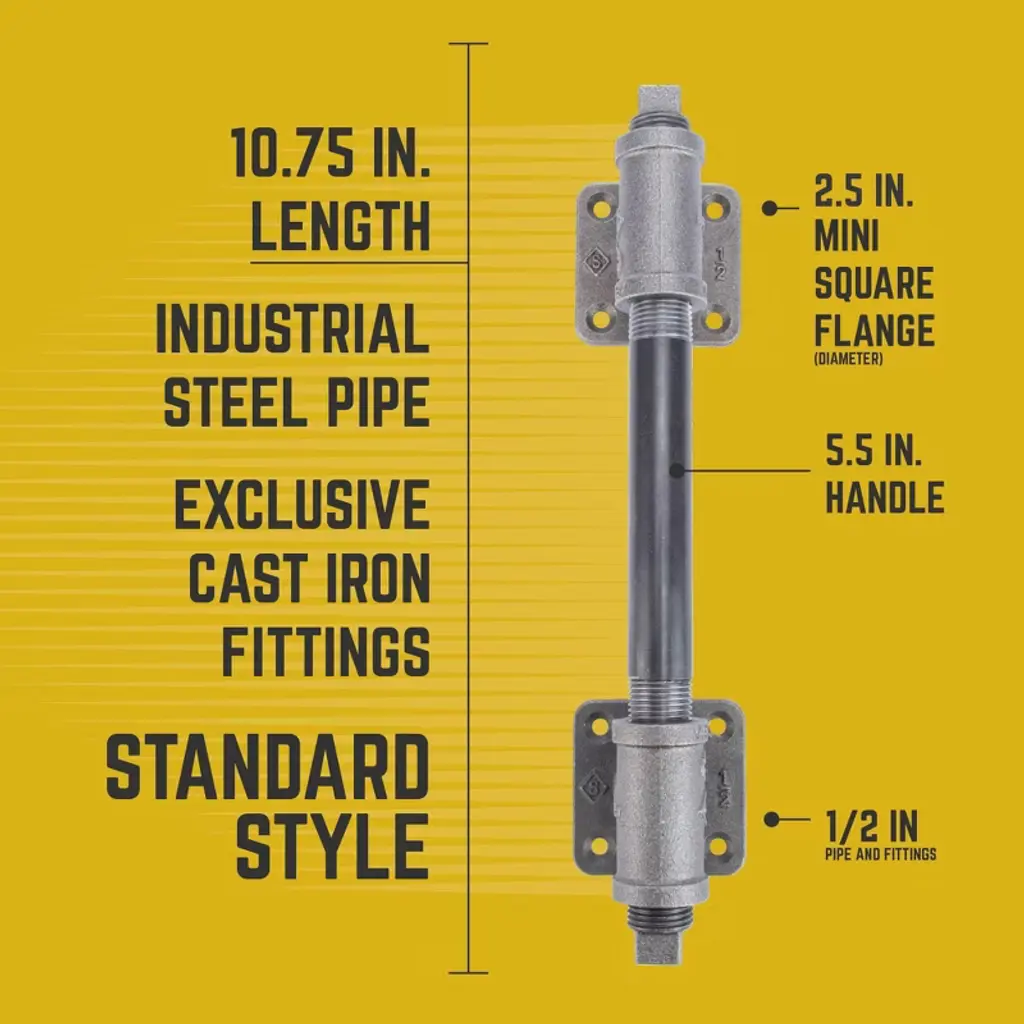 Pipe Decor 1/2 In. Tee Barn Door Handle, Mini-square Flange – 10.75 In. L