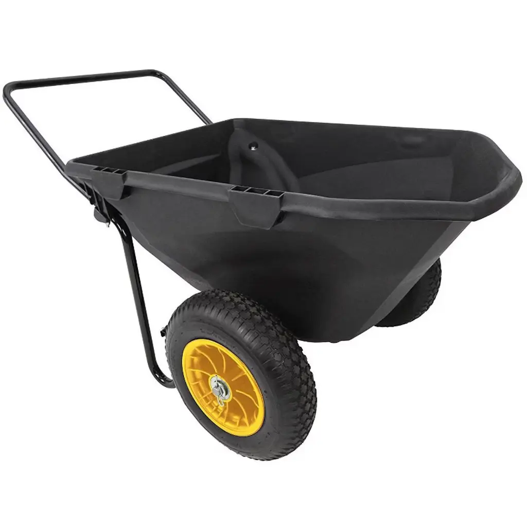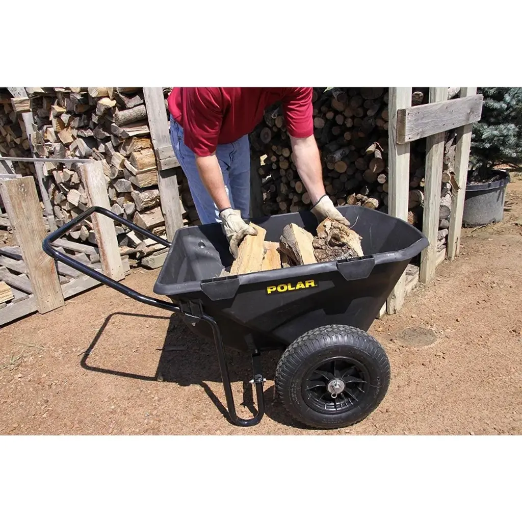 Polar Trailer 7 Cubic Foot Heavy Duty Utility Yard Garden Cart Wheelbarrow With Handle And Wide Track Rubber Wheels Hauling Outdoor, Black, 2 Pack