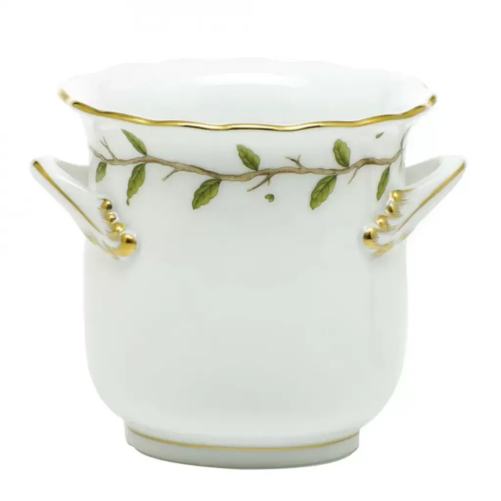 Princess Victoria Green Mini Cachepot With Handles 4.75 In L X 3.75 In H