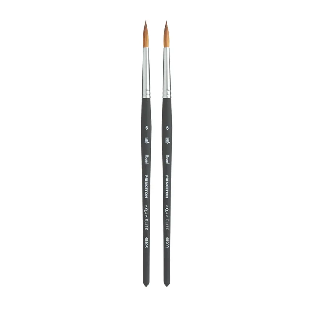 Princeton Aqua Elite Round Brush, Synthetic Bristles, Short Handle Watercolor Paintbrush, Matte Black, Size 16, 1 Count | Discover the Aqua Elite collection from Princeton Artist Co., a game-changer in the world of watercolor brushes. Designed for artists who demand excellence, Aqua Elite brushes deliver a performance that surpasses even natural Kolinsky—offering unparalleled precision, exceptional water retention, and a remarkable color-holding capacity. Each brush in this collection has been meticulously crafted by Princeton's expert artisans, ensuring they maintain their shape and versatility, stroke after stroke. With a vast array of shapes and sizes, Aqua Elite brushes empower you to create with complete freedom—whether you are defining fine, delicate lines or covering expansive washes with effortless grace. Beyond their superior performance, these brushes are also animal-friendly, exceptionally durable, and surprisingly affordable, making them the ultimate choice for artists who seek both quality and sustainability. Aqua Elite isn't just a tool; it's the perfect partner for bringing your creative visions to life.