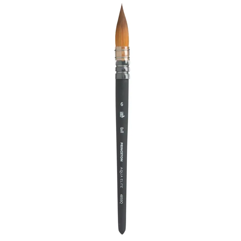 Princeton Neptune Quill Brush, Synthetic Bristles, Short Handle Watercolor Paintbrush, Dark Wood, Size 8, 1 Count | Discover the Neptune collection from Princeton Artist Brush Co., a masterpiece in watercolor brush design that redefines versatility. When Princeton set out to create a synthetic alternative to squirrel hair, they surpassed expectations, crafting brushes that may even outshine their natural counterparts. These brushes feature the softest and most absorbent synthetic hair ever developed by Princeton, elevating your creative potential and control to new heights. The supple bristles effortlessly soak up watercolor, holding a generous reservoir of paint to deliver vibrant, flowing color with every stroke. With an extensive range of shapes and sizes, Neptune brushes allow you to effortlessly transition from delicate, fine lines to expansive washes. Whether you're a seasoned professional or just beginning your artistic journey, these durable and affordable watercolor brushes are an indispensable tool for any artist seeking exceptional performance and versatility.