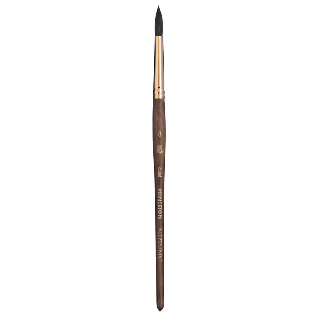 Princeton Neptune Round Brush, Synthetic Bristles, Short Handle Watercolor Paintbrush, Dark Wood, Size 8, Pack of 2 | Discover the Neptune collection from Princeton Artist Brush Co., a masterpiece in watercolor brush design that redefines versatility. When Princeton set out to create a synthetic alternative to squirrel hair, they surpassed expectations, crafting brushes that may even outshine their natural counterparts. These brushes feature the softest and most absorbent synthetic hair ever developed by Princeton, elevating your creative potential and control to new heights. The supple bristles effortlessly soak up watercolor, holding a generous reservoir of paint to deliver vibrant, flowing color with every stroke. With an extensive range of shapes and sizes, Neptune brushes allow you to effortlessly transition from delicate, fine lines to expansive washes. Whether you're a seasoned professional or just beginning your artistic journey, these durable and affordable watercolor brushes are an indispensable tool for any artist seeking exceptional performance and versatility. Sold as a pack of 2.
