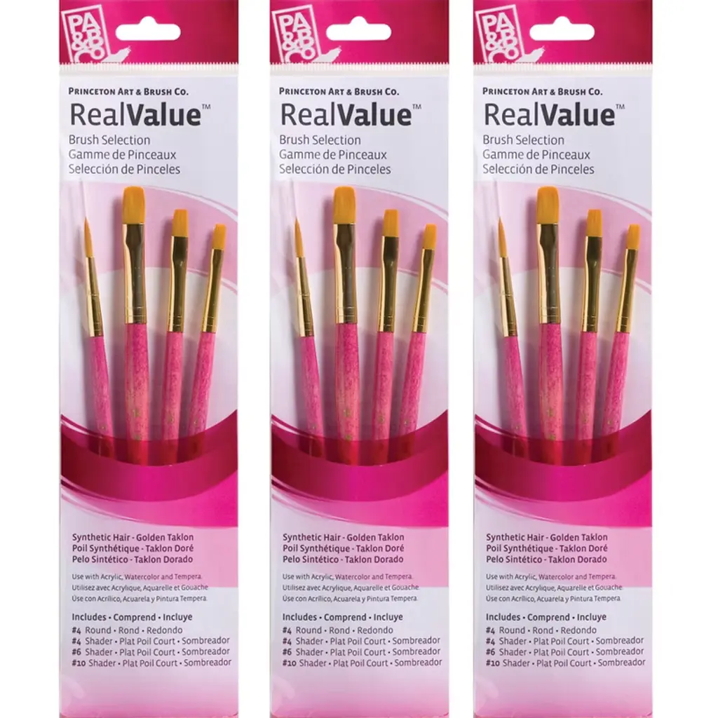 Princeton RealValue Brush Set, Camel Bristles, Short Handle Mixed Media Paintbrush, Red, 3 Pieces | Princeton Artist Co. proudly presents the RealValue paintbrush collection—a curated series of meticulously selected brush sets that cater to every artistic need. Whether you prefer short-handle or long-handle styles, natural, synthetic, or a blend of bristles, the RealValue collection offers an unparalleled range of shapes and sizes. Designed to meet the demands of artists across all mediums—acrylic, watercolor, tempera, and oil—these brushes deliver exceptional mixed media performance at an incredible value. With RealValue, you'll find the perfect brush set to elevate your craft, whether you're just beginning or are a seasoned professional.