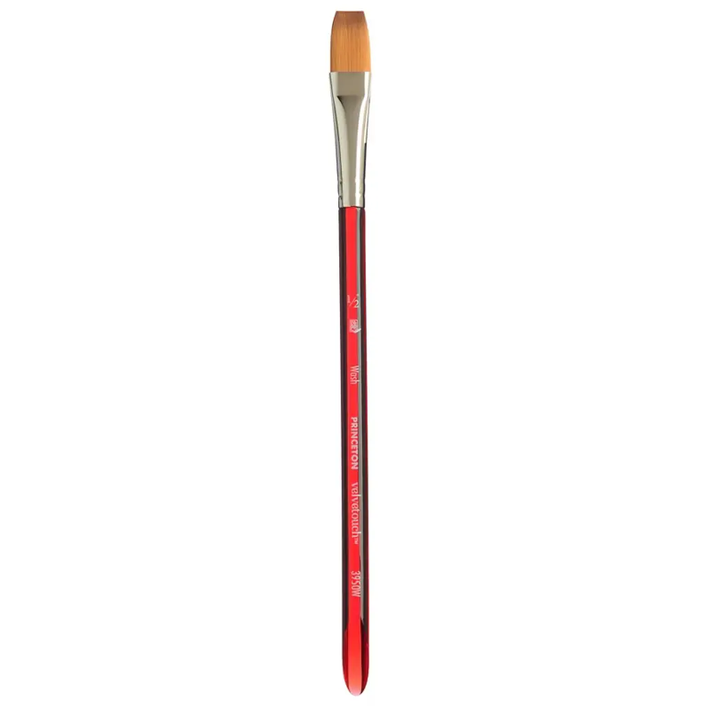 Princeton Velvetouch Wash Brush, Synthetic Bristles, Short Handle Mixed Media Paintbrush, Scarlet, Size 1/2 inch, Pack of 2 | Velvetouch, from Princeton Artist Brush, presents a comprehensive collection of multi-media brushes crafted by expert brush makers, meticulously engineered to deliver superior performance across oil, acrylic, watercolor, and gouache mediums. These brushes are perfect for capturing the finest details, blocking, shading, lettering, or applying washes. Crafted with a unique blend of luxury synthetic filaments, offering exceptional versatility, enhanced color-holding capacity, and precise color placement. The signature Velvetouch handle provides a smooth, comfortable grip, ensuring better control with every stroke. With a wide array of essential, specialty, and miniature brushes, Velvetouch offers an affordable, durable, and animal-friendly solution for artists at any level. Whether you're a seasoned professional or just beginning your artistic journey, these premium brushes are designed to help you create your next masterpiece with confidence. Sold as a pack of 2.