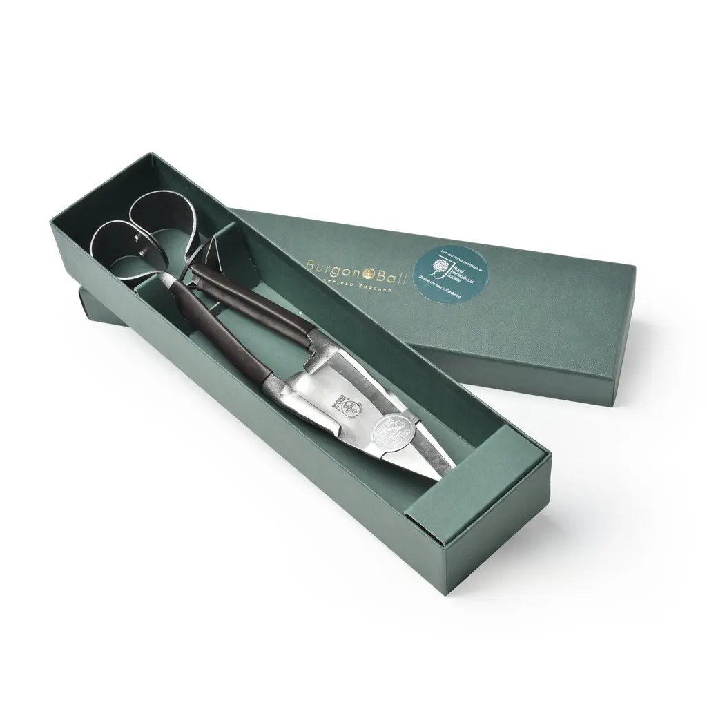 The green thumb gift you’ve been looking for. These Topiary Shears from Burgon & Ball are a fantastic gift for a gardening-loving friend. Based on the brand’s popular professional soft-squeeze shears, this product features elegant leather handles. The water-resistant and super-soft leather wraps around the handles to offer a comfortable feel, while the double bow handle design provides perfect grip. Made with compact blades, the shears are ideal for precision cutting or for people with smaller hands. The sharp, angles blades allow the user to cut perfectly straight lines with ease. Alternatively, turning the shears over offers a simple solution to create curved shapes. The Topiary Shears Leather Handled Professional Soft Squeeze are made of high carbon, hardened, and tempered steel. They come in a stylish green gift box.