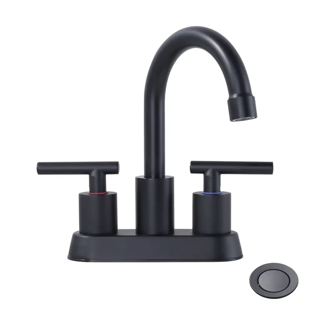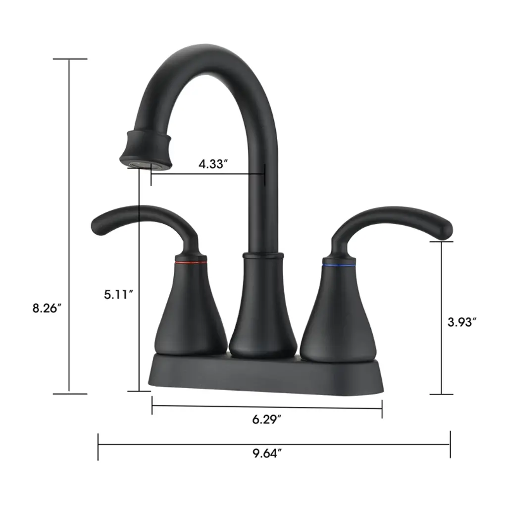 Proox 4 In. Centerset 2-handle Bathroom Faucet With Pop Up Drain In Matte Black