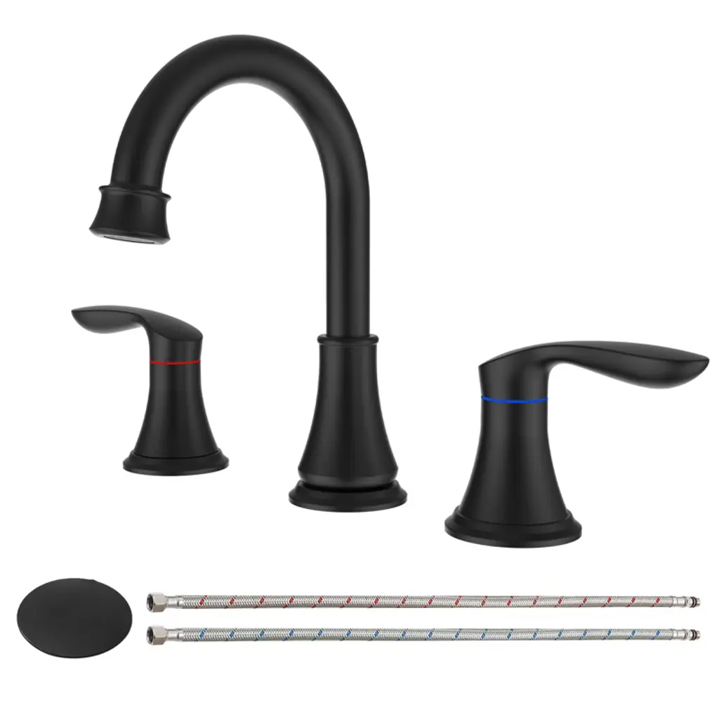 PROOX 2-handle bathroom faucet features a high arc spout with a longer reach into the sink basin providing lots of washing space while this lavatory faucet with pop up drain assembly for quick and simple installation. Constructed of stainless steel that bring the warm look of stainless to your washroom. This faucet offers petal-like handles and a swan-like swivel spout to bring a comfortable, luxurious feeling to your bathroom.