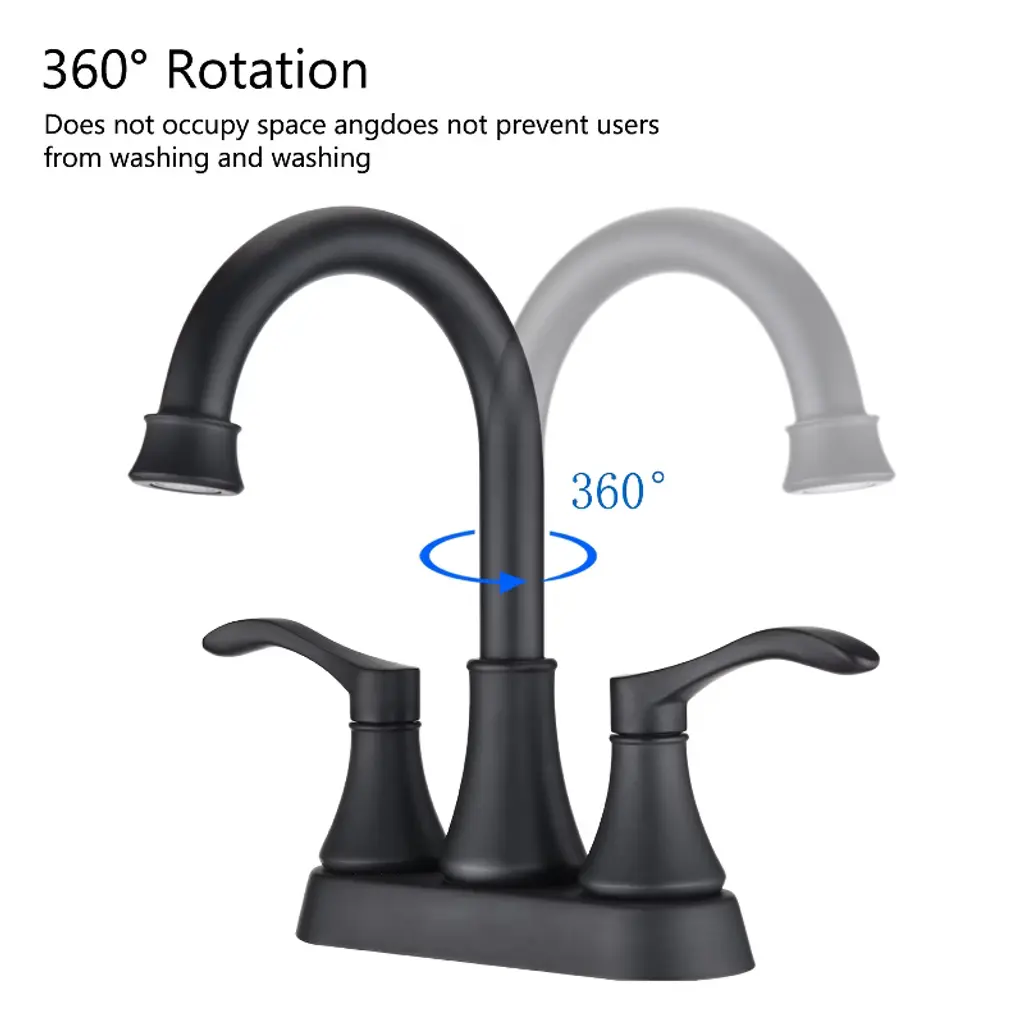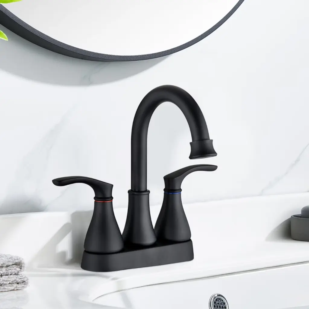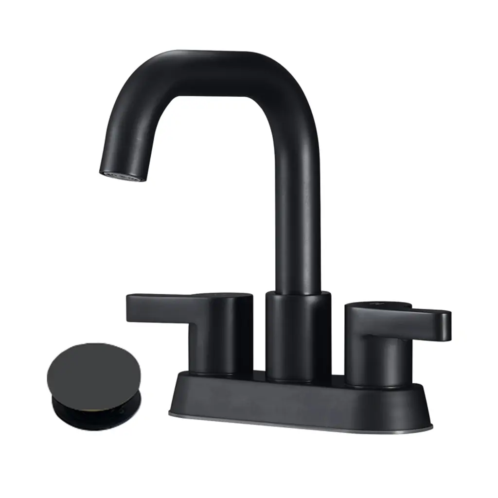 Proox 4 In. Centerset 2-handle Swivel Spout Bathroom Faucet With Pop Up Drain In Matte Black