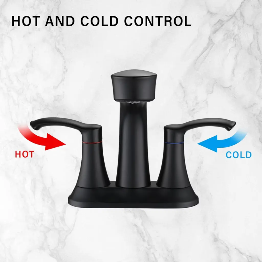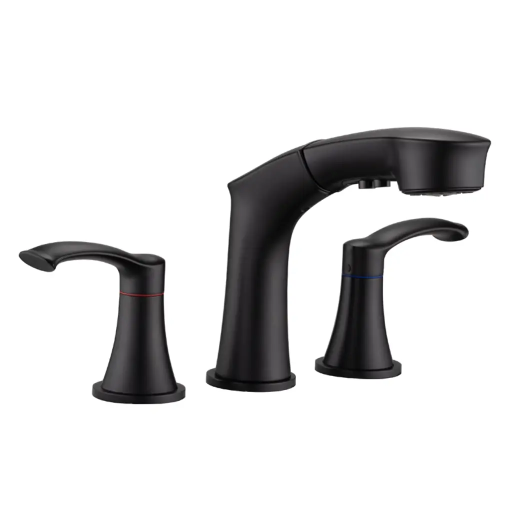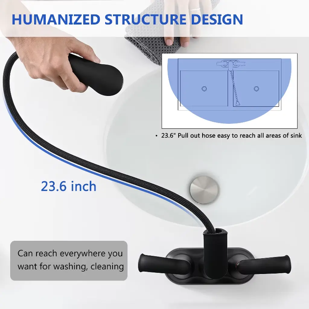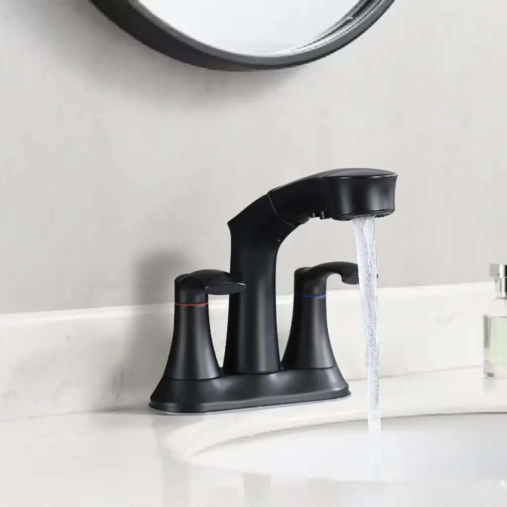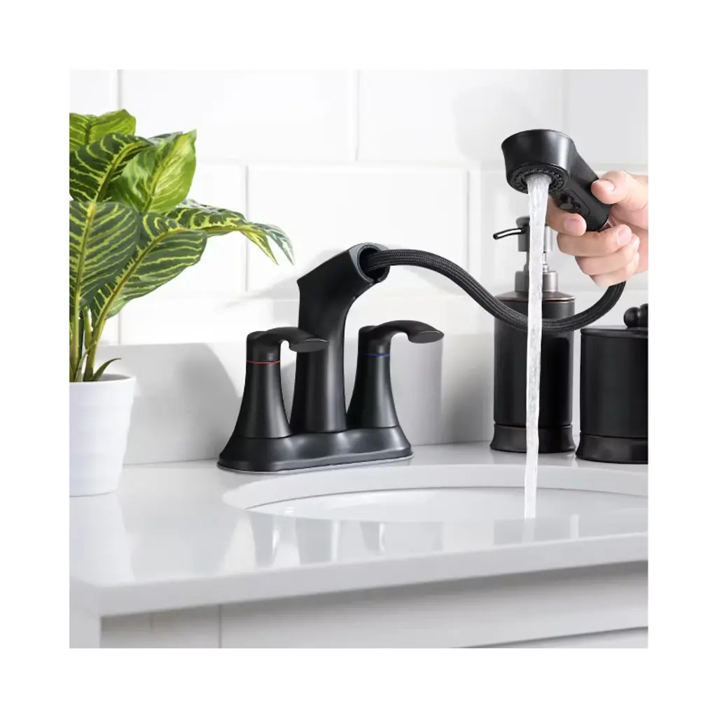 Proox 4 In. Centerset Double Handle High Arc Bathroom Faucet With Pull Out Sprayer In Matte Black