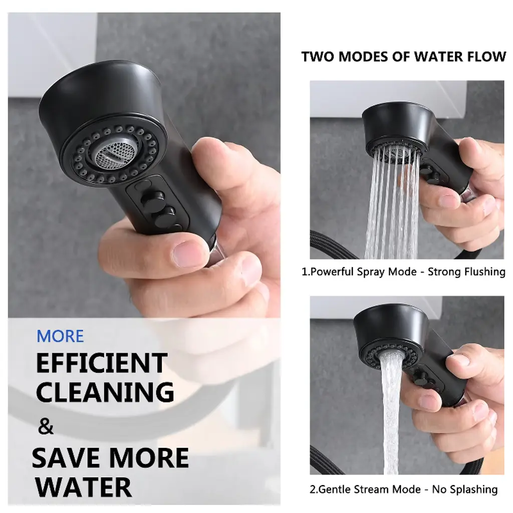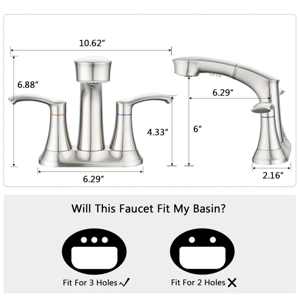 Update your bathroom with this classically elegant PROOX Centerset Bathroom Faucet. The gently curved design of its lever handles carries over to the arching spout to form a graceful silhouette. This faucet is featured with a pull-out prayer for bathroom and laundry use. The long pull-out spray of the PROOX Flex lavatory faucet enables many activities that are difficult to manage with other faucets: spontaneously washing your hair overhead, bathing the baby, or quickly washing out a sweater. Do all this with 2-spray modes: Powder Spray and Gentle Stream. Simply push the button to choose the modes.