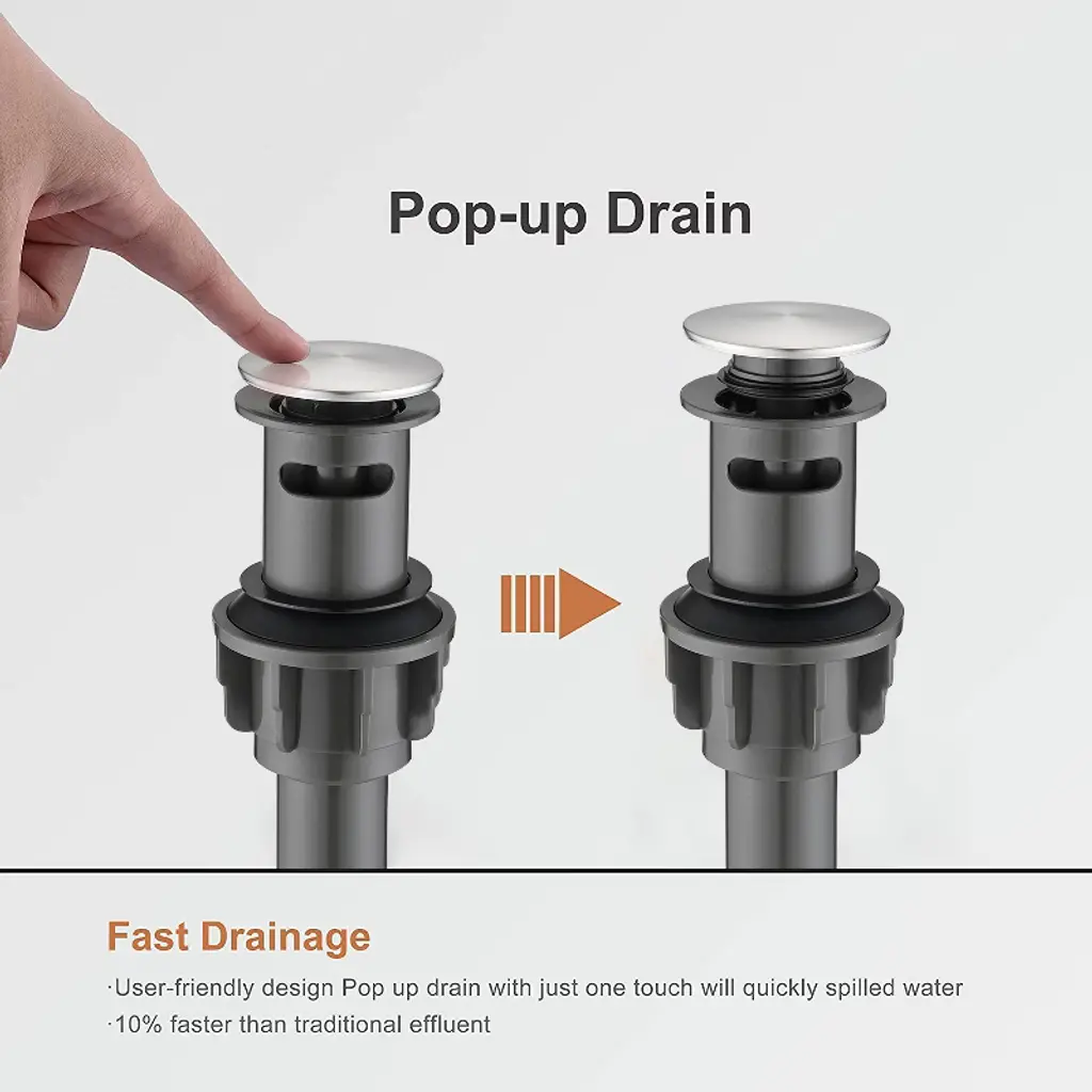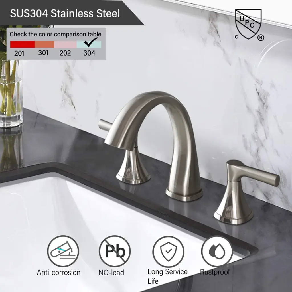 The PROOX Widespread Faucet features graceful curves and tapered shapes that complement both modern and traditional bathroom styles. Crafted from high-quality materials, this product boasts a smooth finish that resists tarnishing. It comes with a matching pop-up drain that has an overflow hole.
