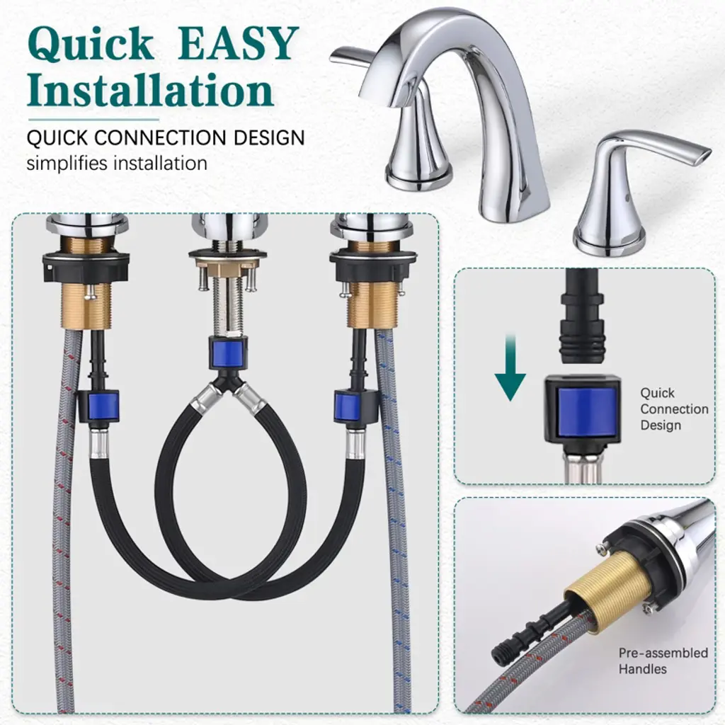 The PROOX Widespread Bath Faucet boasts a versatile transitional design that perfectly complements any bathroom decor. The sink faucet is equipped with a pop-up drain that can be effortlessly installed in just 3 simple steps, taking only minutes to complete. Furthermore, the faucet's ceramic disc valves offer impeccable handle operation performance.