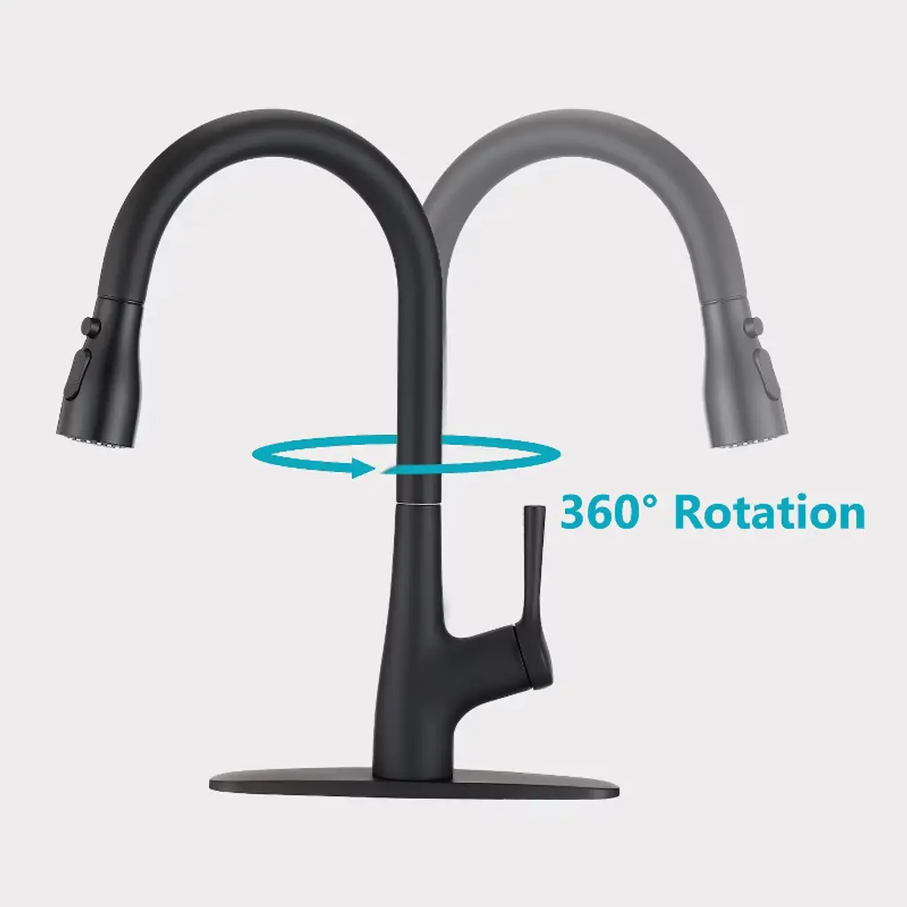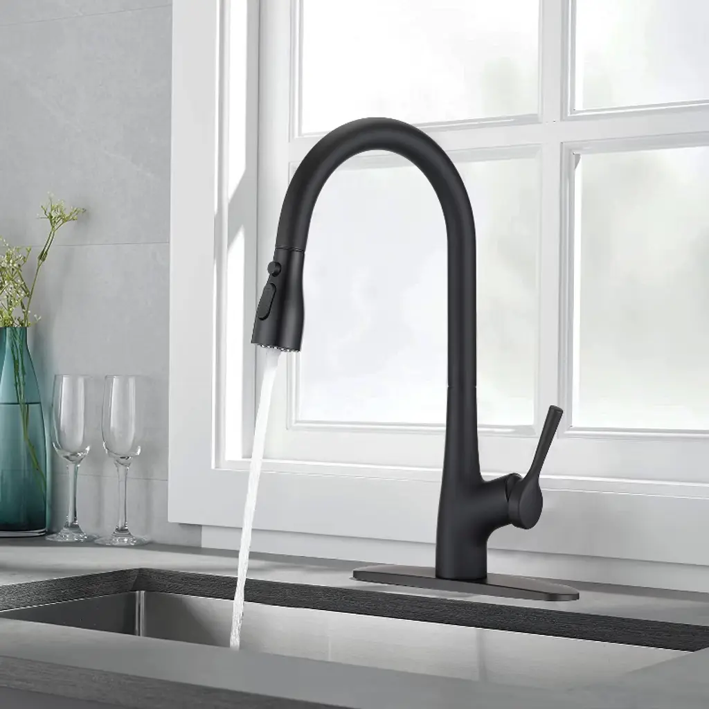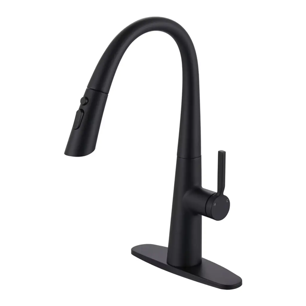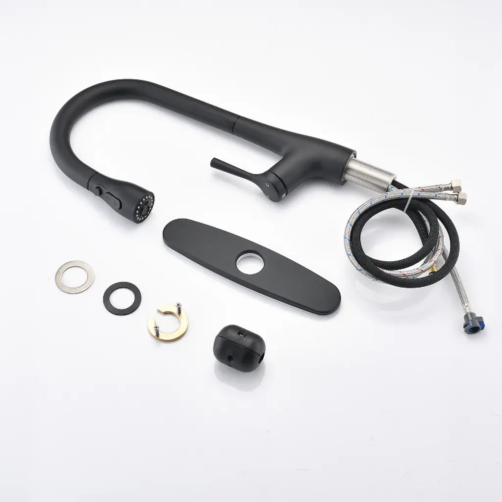 Proox Single Handle Gooseneck Pull Down Sprayer Kitchen Faucet In Matte Black