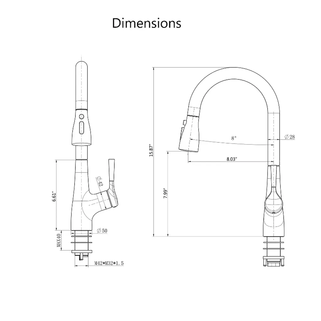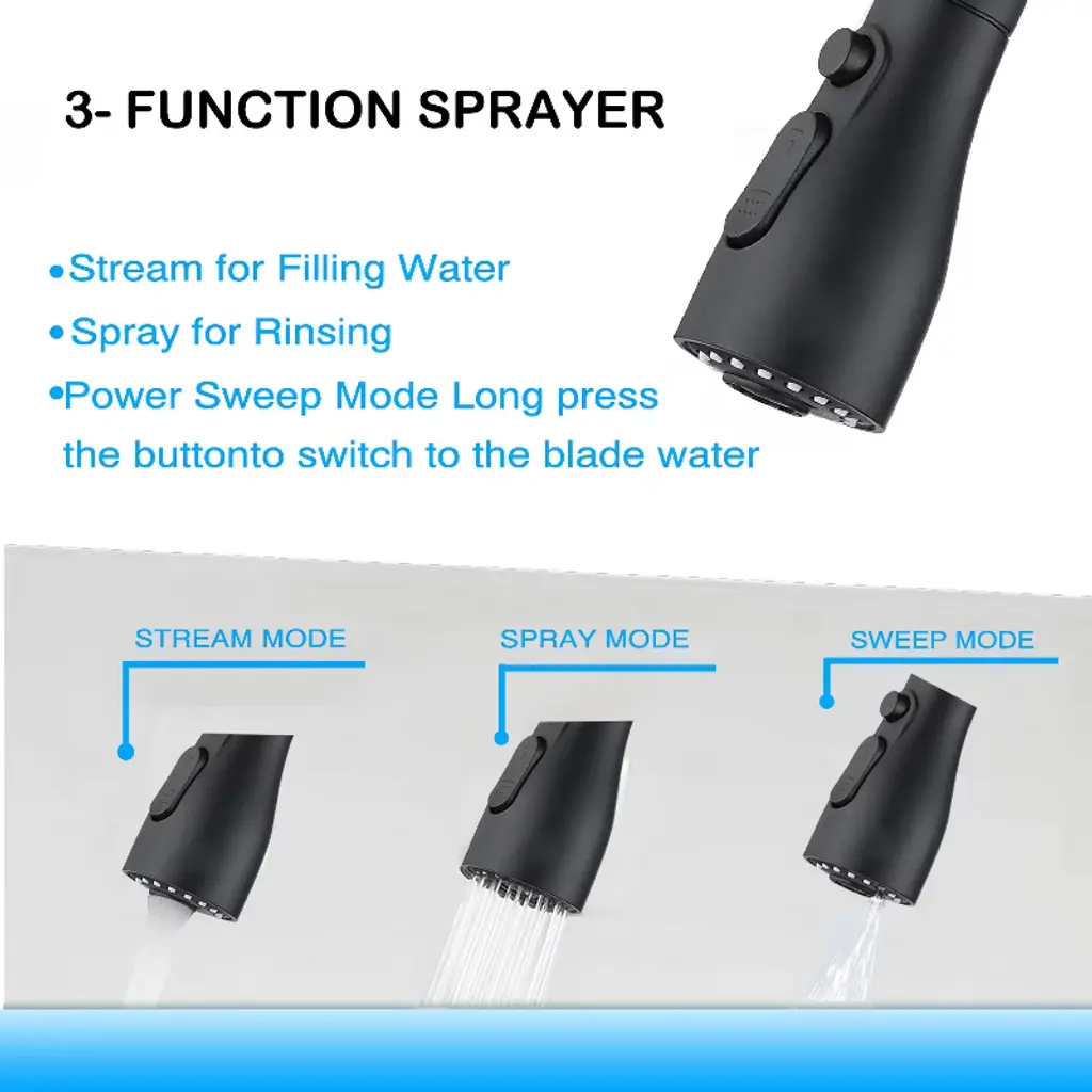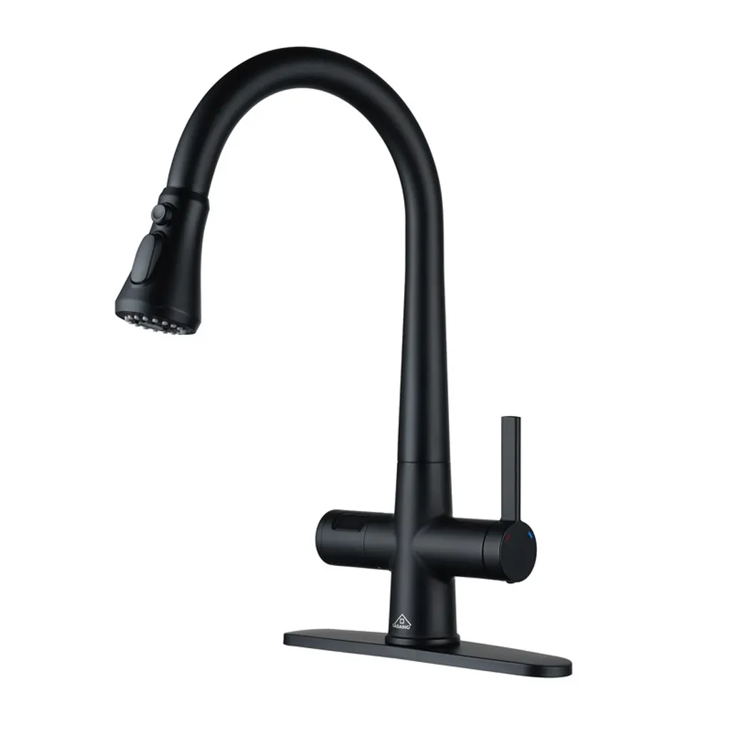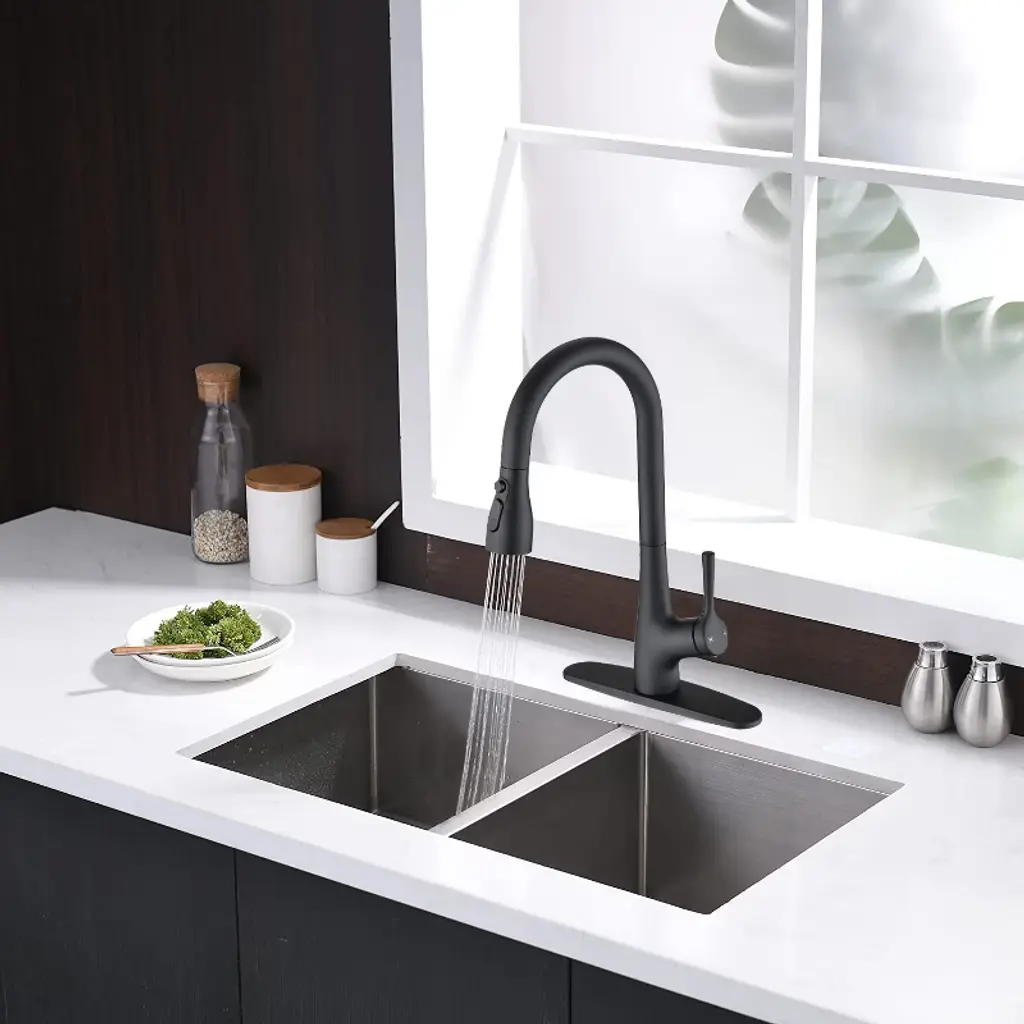 Proox Single Handle Gooseneck Pull Down Sprayer Kitchen Faucet In Matte Black