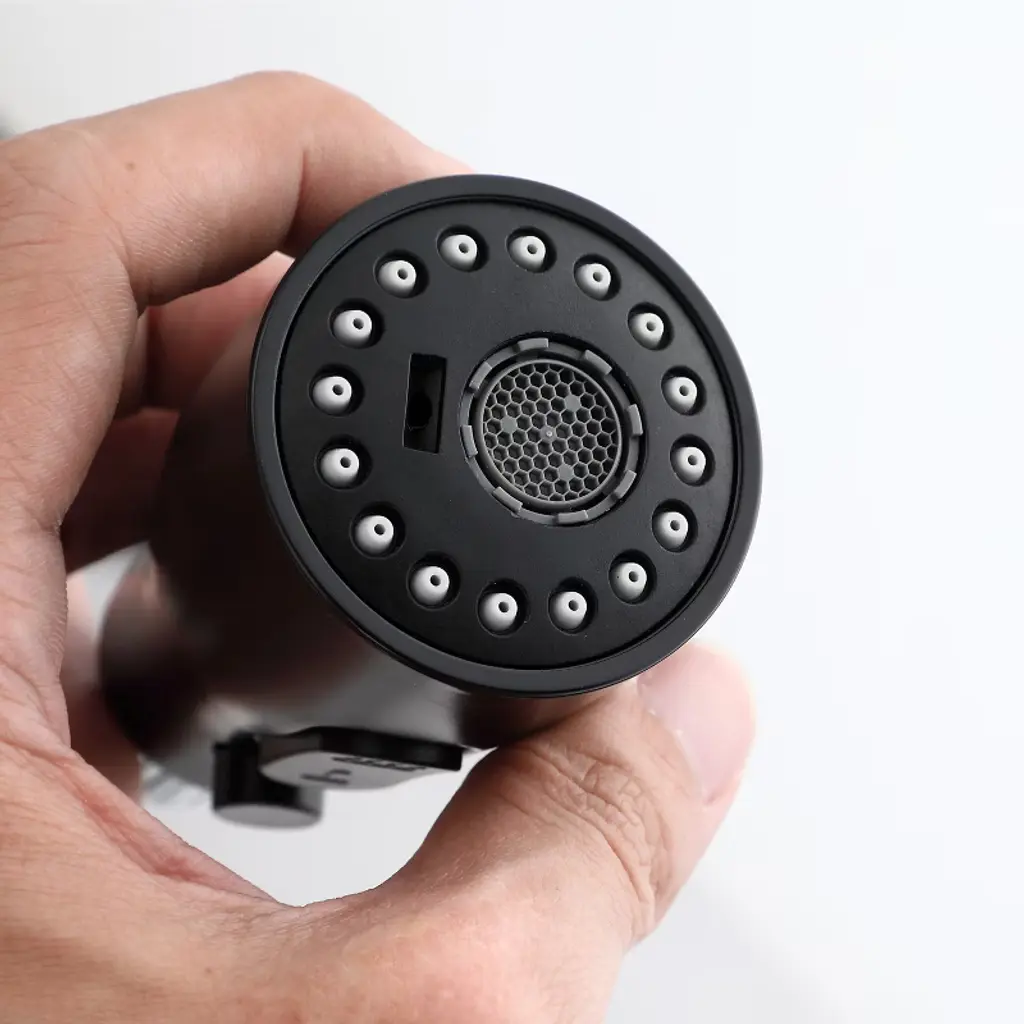 The PROOX Single-Hole Kitchen Faucet has a button that lets you quickly switch from aerated stream to a powerful spray or sweep mode. A premium finish covers this solid brass product to deliver lasting rust-resistant beauty. A great fit for a busy kitchen, the PROOX's faucet head can be pulled down from its swivel spout for increased mobility when rinsing dishes.
