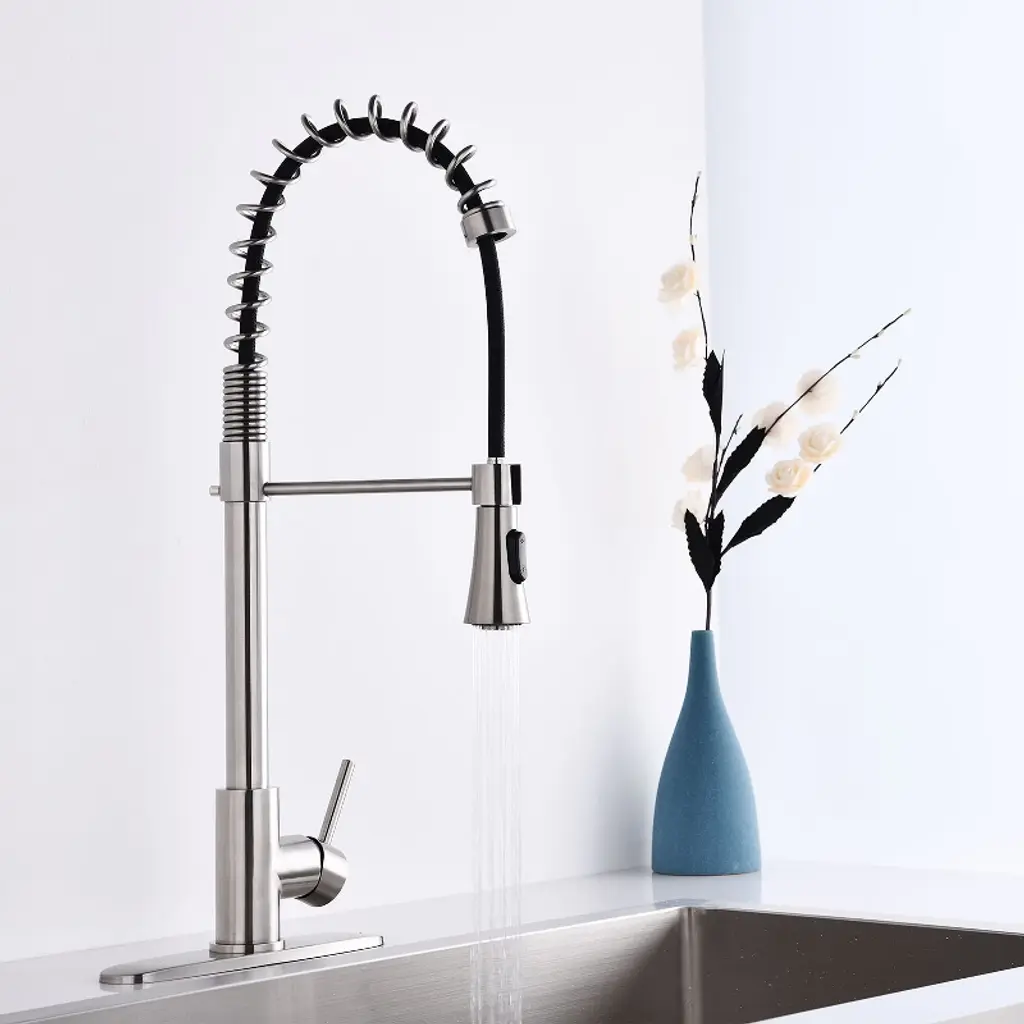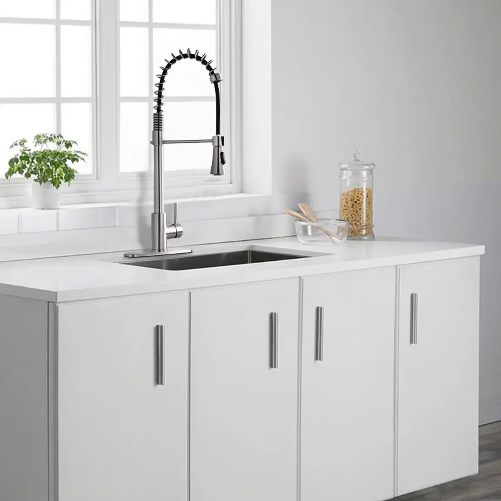 Upgrade your Kitchen Faucet with Spring Spout. This faucet features a high, swooping arc to make cleaning and filling large pots a breeze. For those hard-to-reach areas, release the hand sprayer from its holder to help you complete the job.