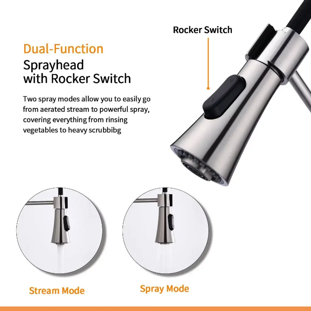 Proox Single-handle Pull Down Sprayer Kitchen Faucet In Brushed Nickel