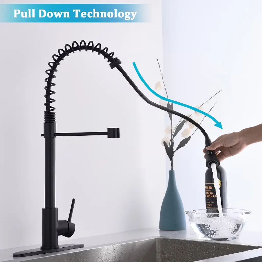 Proox Single-handle Pull-down Sprayer Kitchen Faucet In Matte Black