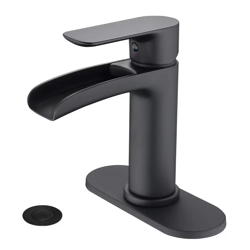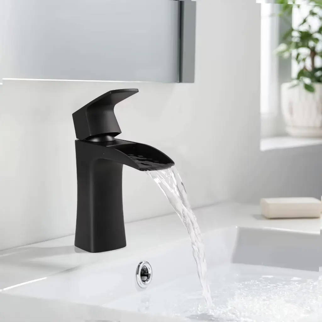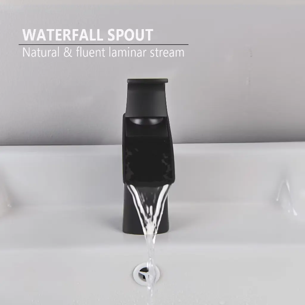 Proox Single Handle Single Hole Waterfall Spout Bathroom Faucet With Drain Assembly In Matte Black