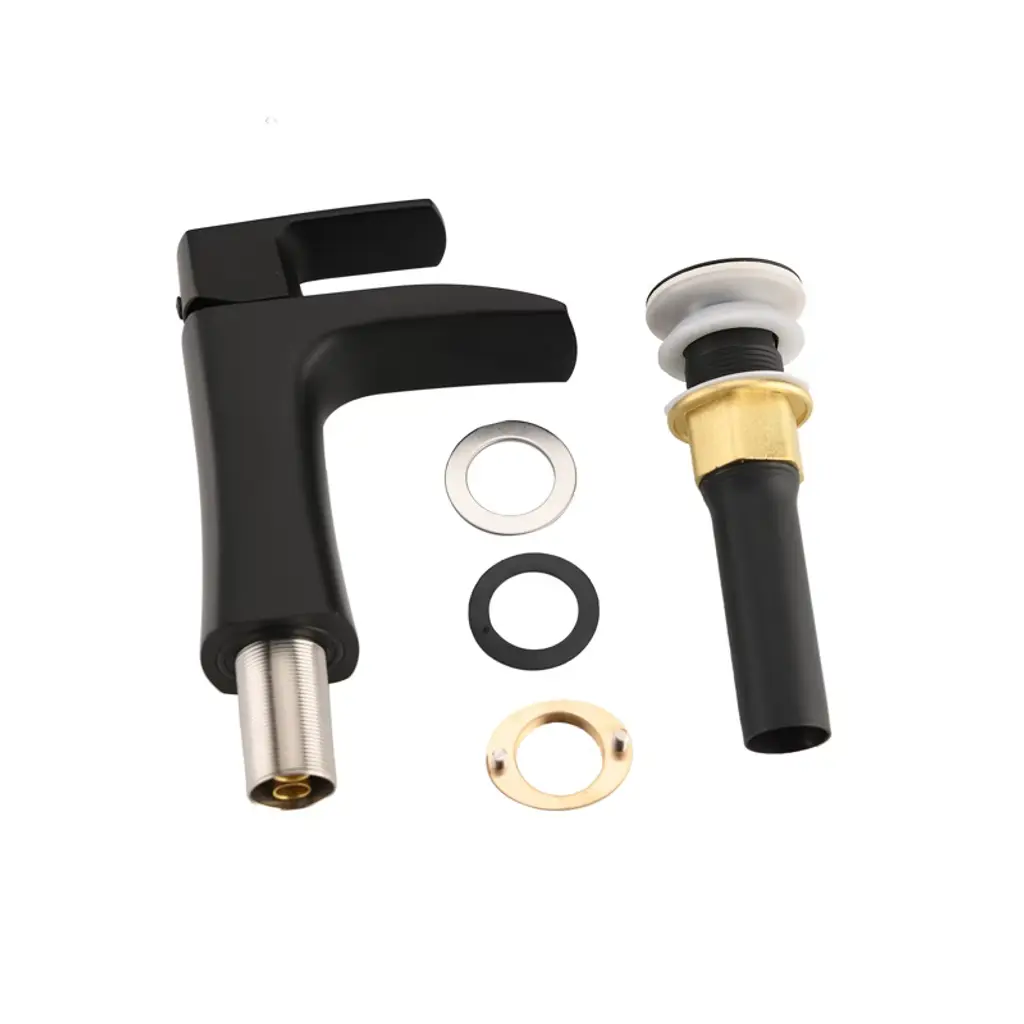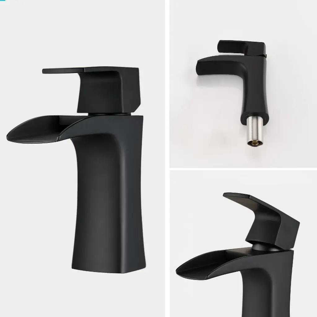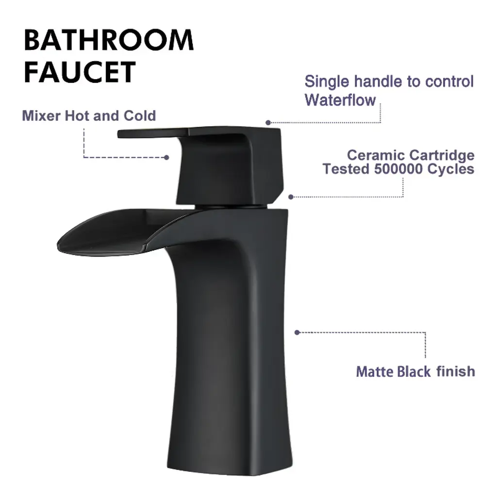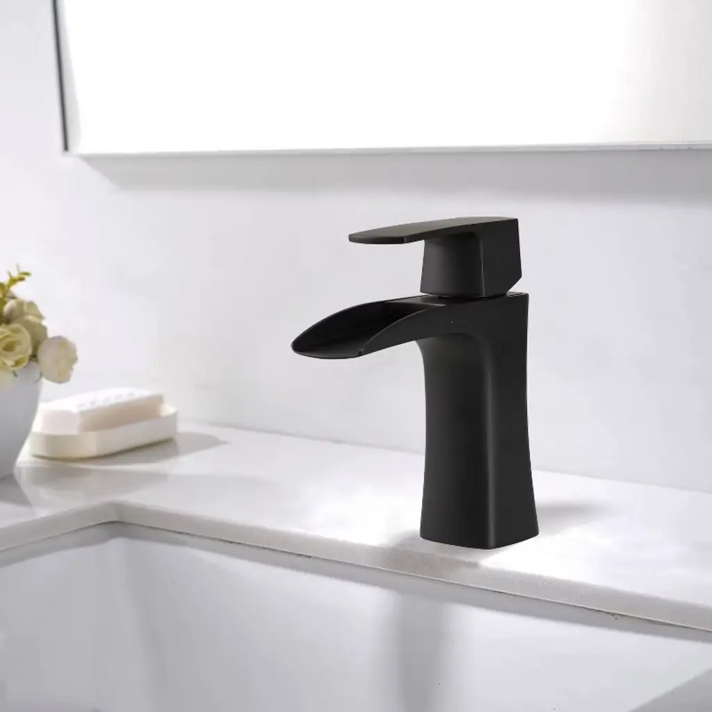 Proox Single Handle Single Hole Waterfall Spout Bathroom Faucet With Drain Assembly In Matte Black