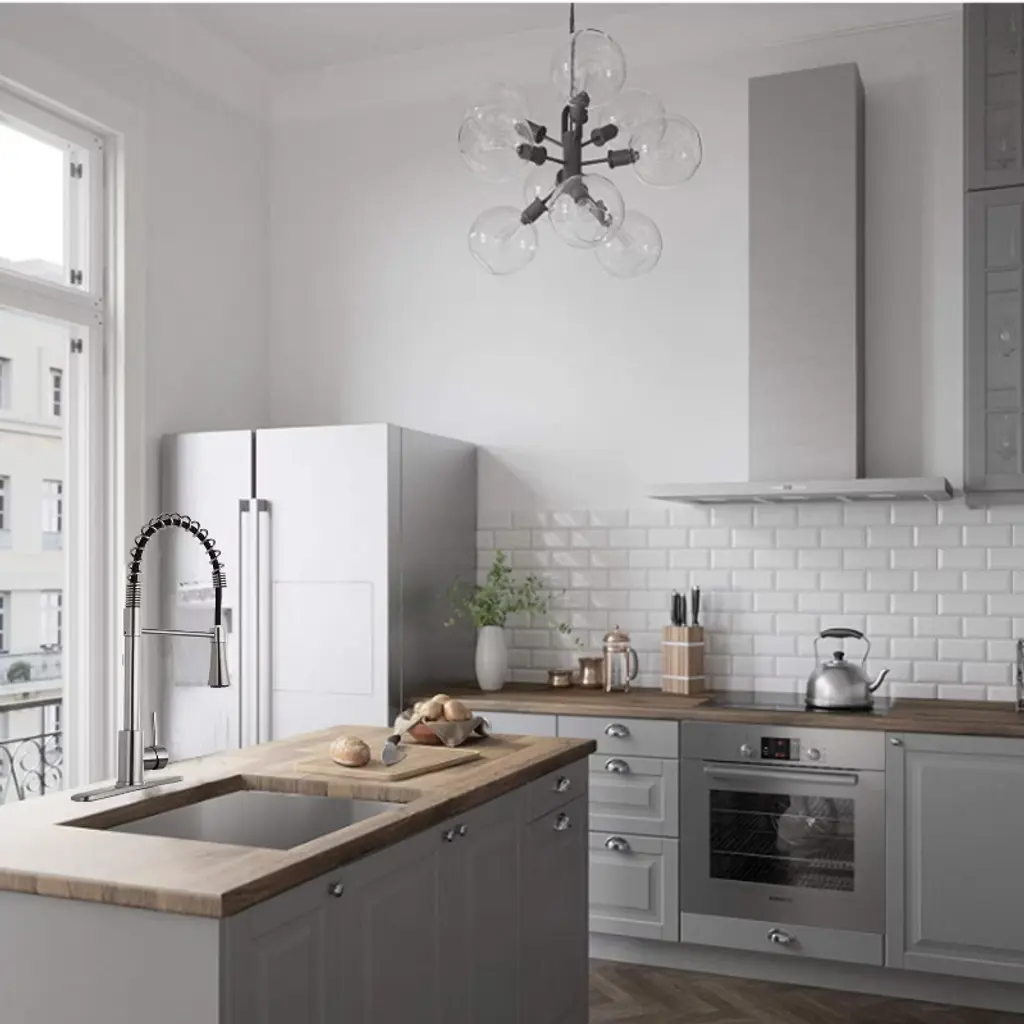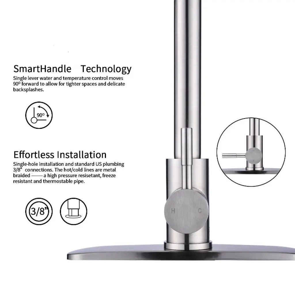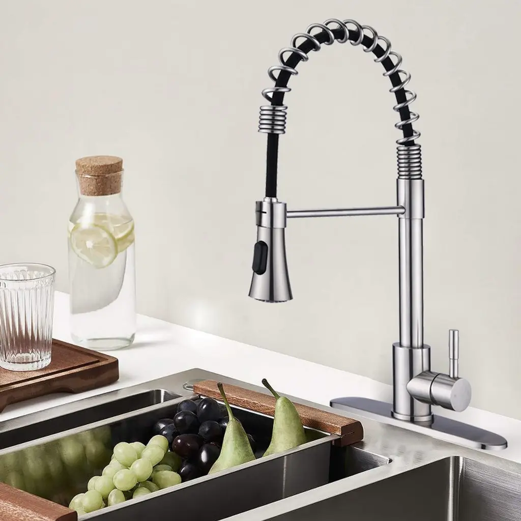 Proox Single-handle Stainless Steel Spring Pull Down Sprayer Kitchen Faucet In Brushed Nickel