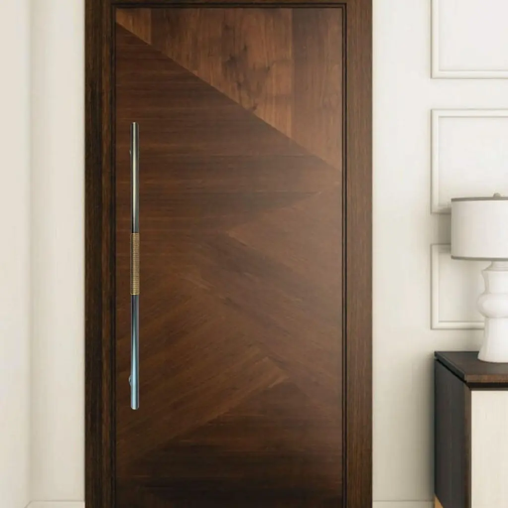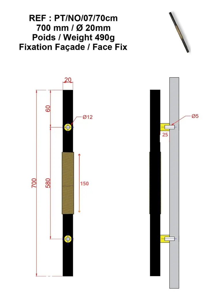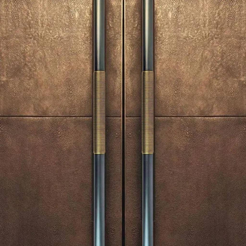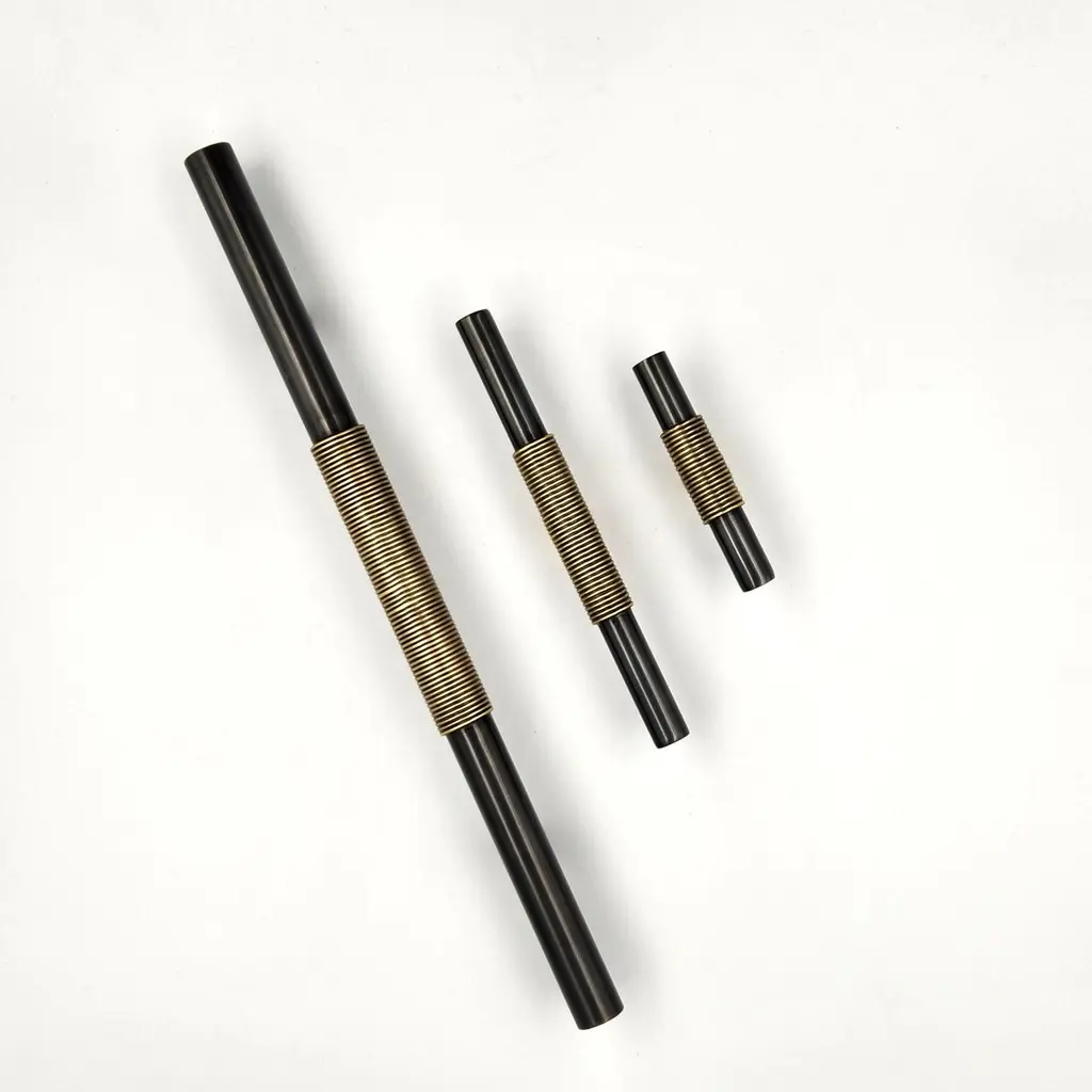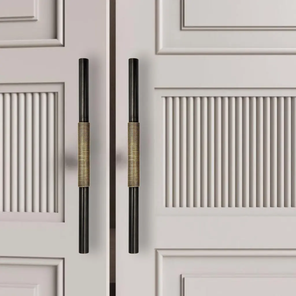 Use: IndoorHandcrafted in our workshop, the PT/NO/07/70cm door pull is the result of meticulous artisanal craftsmanship. Each brass wire is precisely shaped and manually wrapped around the gunmetal patinated brass tube. The contrast between these two finishes creates an elegant visual depth, highlighting the intricate details of this unique piece.With its 70 cm length, this door pull is ideal for entrance and living room doors. Its modern design, inspired by oriental culture, balances refinement and sophistication. Brass, a noble and timeless material, ensures both strength and durability.Equipped with a surface-mount system, it integrates seamlessly onto doors, providing a comfortable grip. Each piece, handcrafted with care, features subtle variations in patina and texture, reinforcing its unique and authentic character.note: Differences from the sample/photo provided should not be considered manufacturing defects, but rather a characteristic of the manual process, which may result in variations in color and uniformity.Brass is a living material that gradually develops a patina over the years.