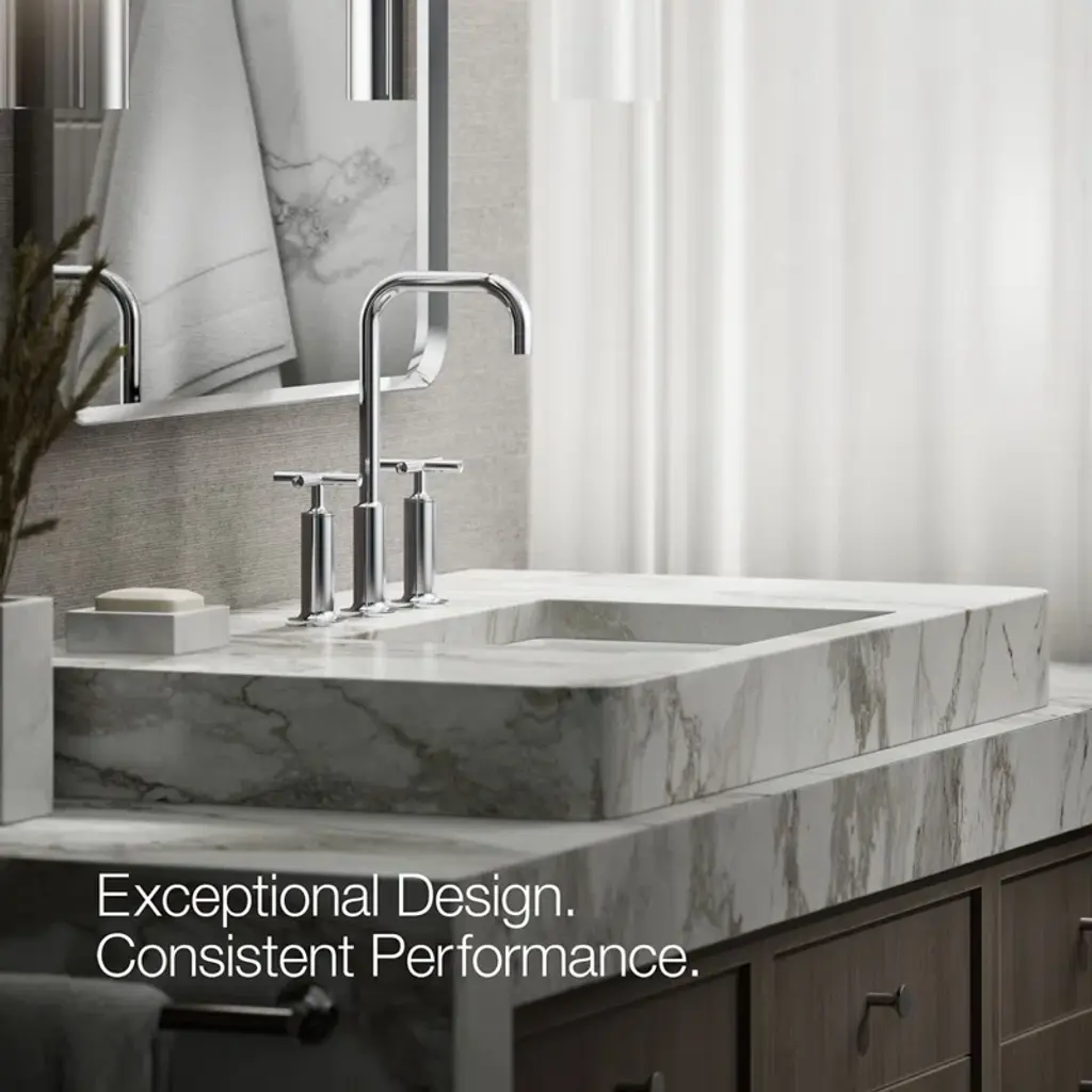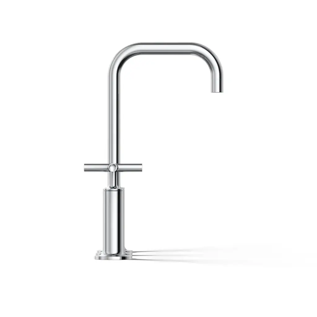 Combining architectural forms with sensual design lines, Purist faucets, and accessories brings modern elegance to your bathroom. This sink faucet exemplifies the Purist collection's understated style, with its high gooseneck spout and cross handles. Easy-to-install and leak-free UltraGlide valves provide reliable performance and durability. The spout features laminar flow, which helps conserve water while preventing splashing.