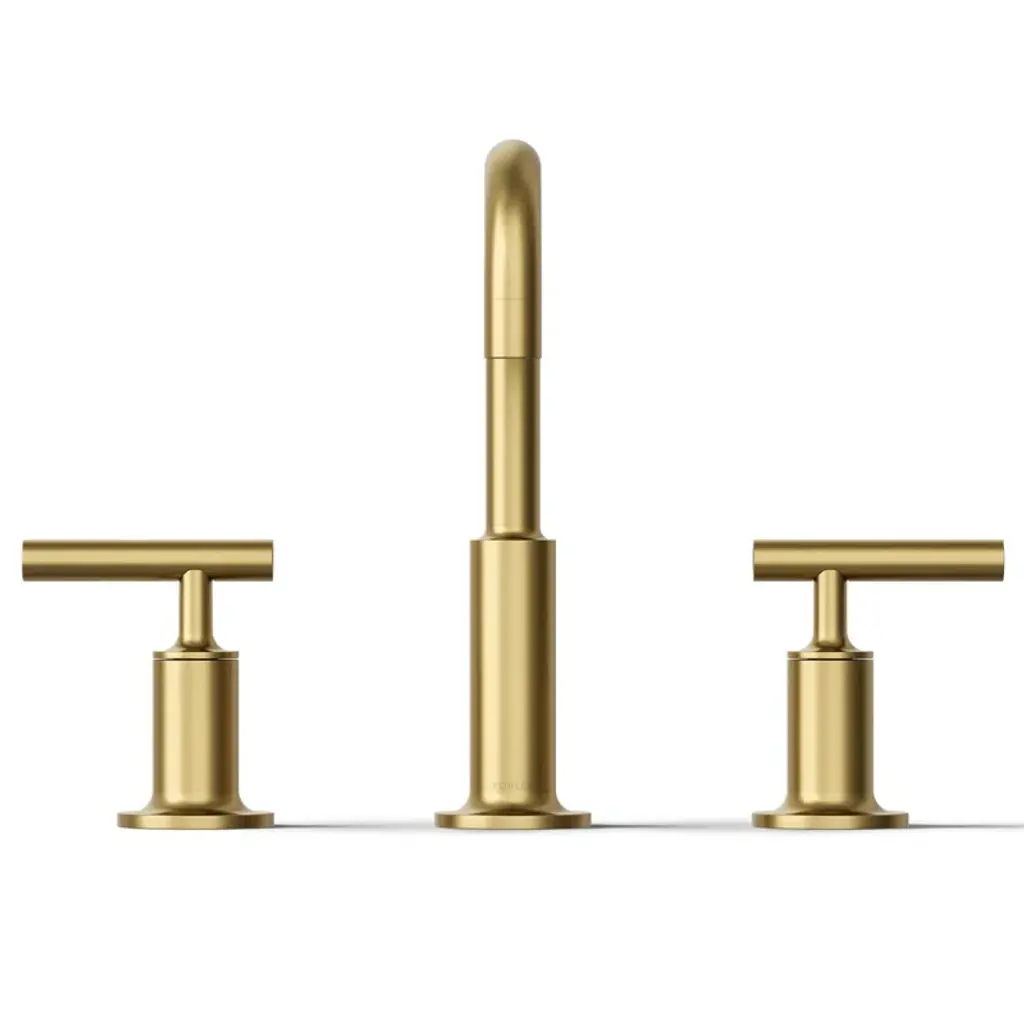Purist® Widespread Faucet With Drain Assembly Low Lever Handles And Low Gooseneck Spout