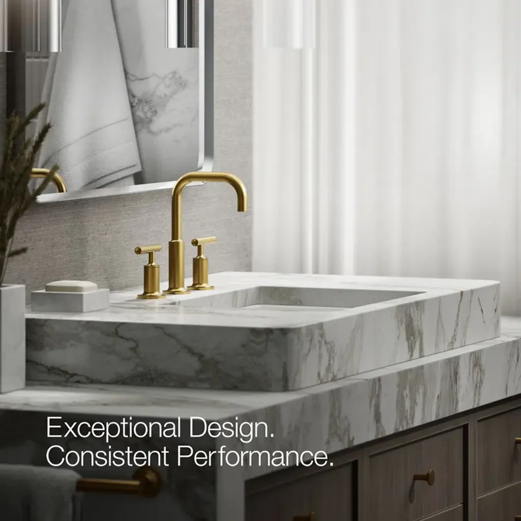 Combining architectural forms with sensual design lines, Purist faucets and accessories bring a touch of modern elegance to your bathroom. This sink faucet exemplifies the Purist collection's understated style, with its low gooseneck spout and lever handles. Easy-to-install and leak-free UltraGlide™ valves provide reliable performance and durability. And the spout features laminar flow, which helps conserve water while preventing splashing.
