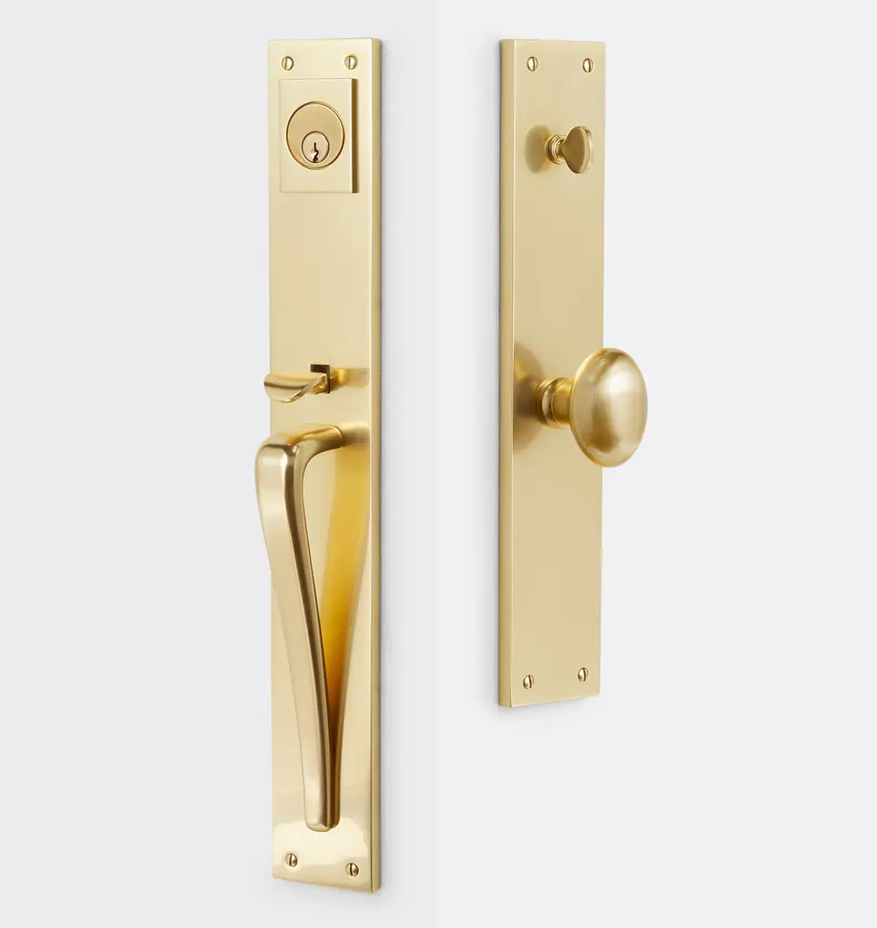 The Putman Exterior Mortise Door Set, with its beveled edges and graceful curves, is an understated American classic. A fresh take on a design popular from the mid-1890s to 1950, this timeless door set suits homes of nearly any style.Coordinating doorsets and finishes unify the look of a home, but a door set's ability to open smoothly, lock snugly, and keep working are details as important, if not more, than how it looks. We make them like they used to - to last - with crisply detailed forged brass backplates.This product can expose you to chemicals including lead, which are known to the State of California to cause cancer and birth defects or other reproductive harm. For more information go to www.P65warnings.ca.gov