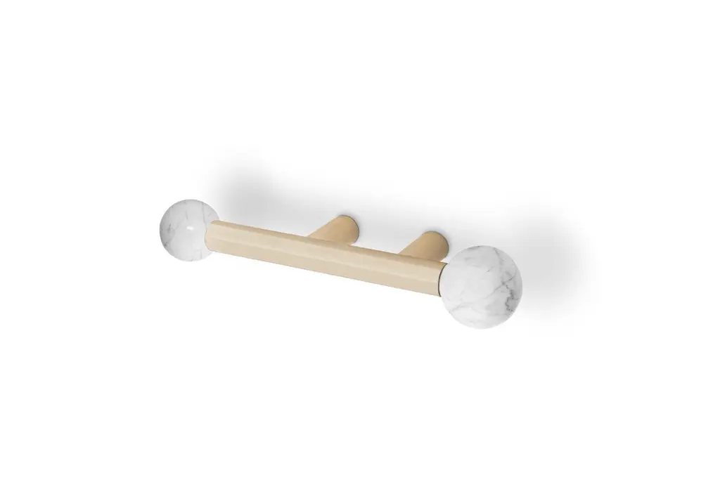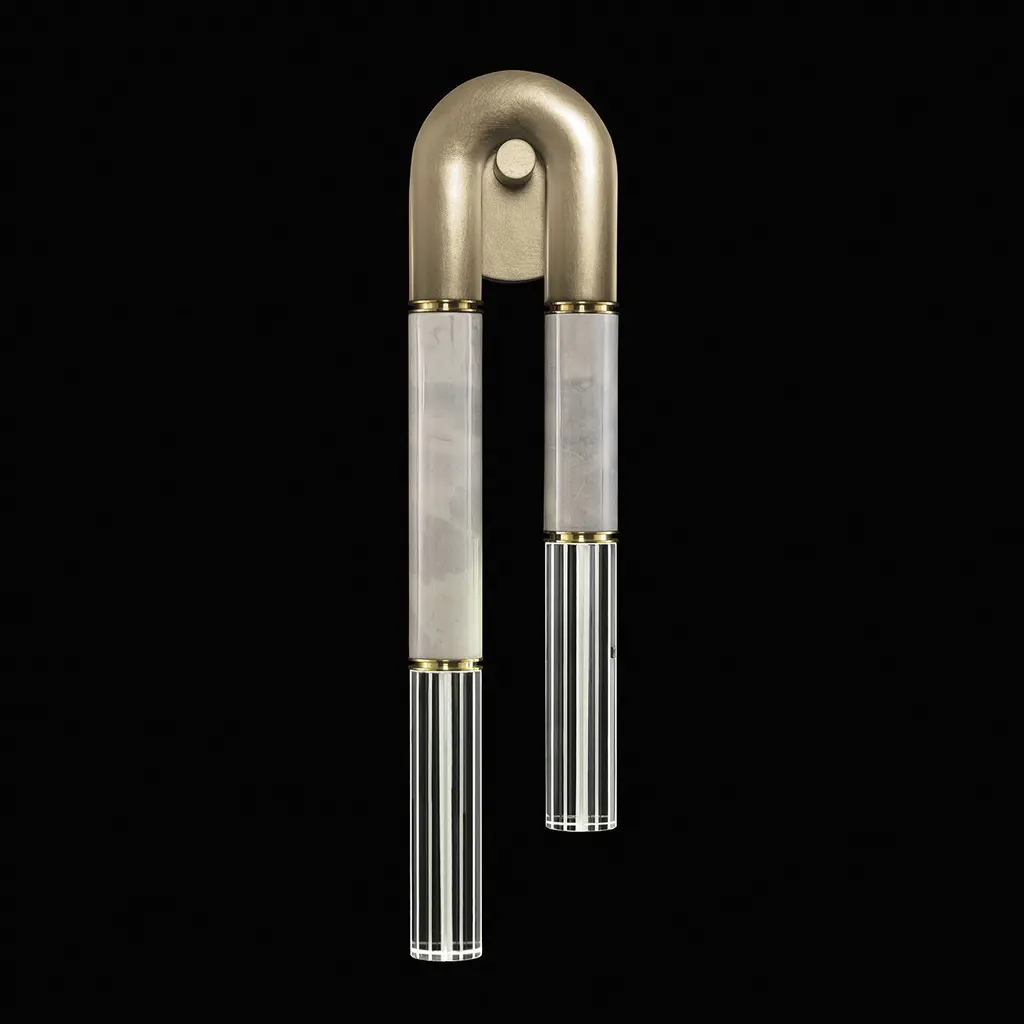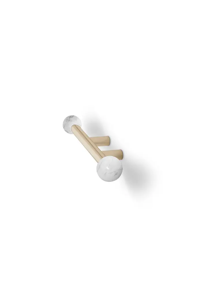 The Quantum Cabinet Handle offers Mid-Century flair at its finest hence being distinctively inspired by the atomic age design. It showcases a vertical Gold Plated tube with a round atomic motif in both extremities, enhanced in marble.