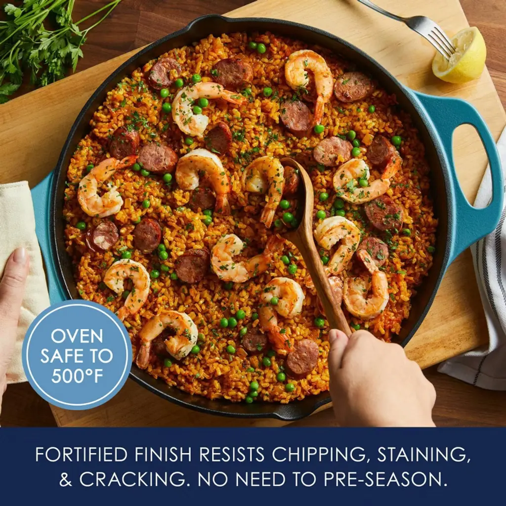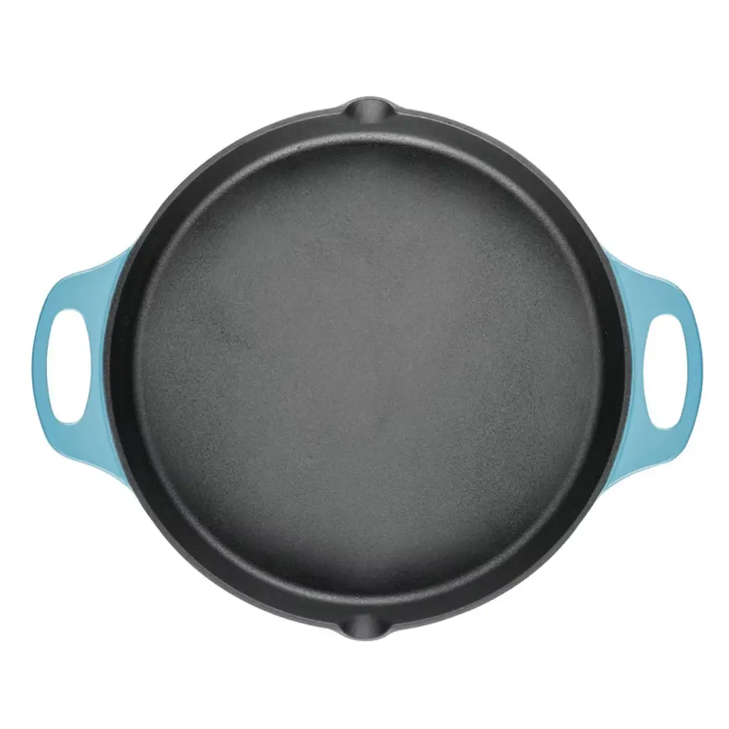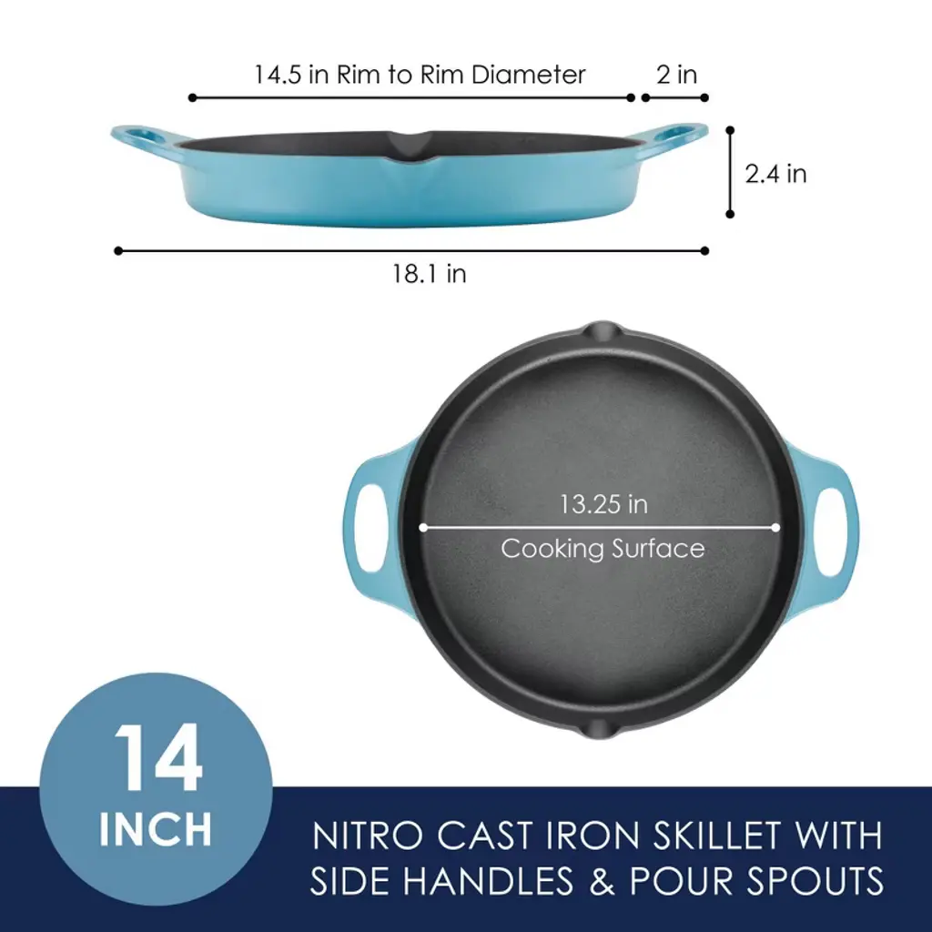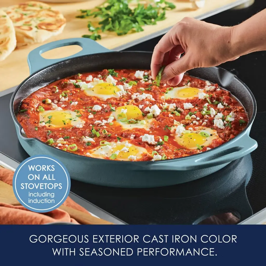 Rachael Ray 14" Nitro Cast Iron Skillet With Side Handle Agave Blue: Double Handled, 14 Inch, Electric & Gas Compatible
